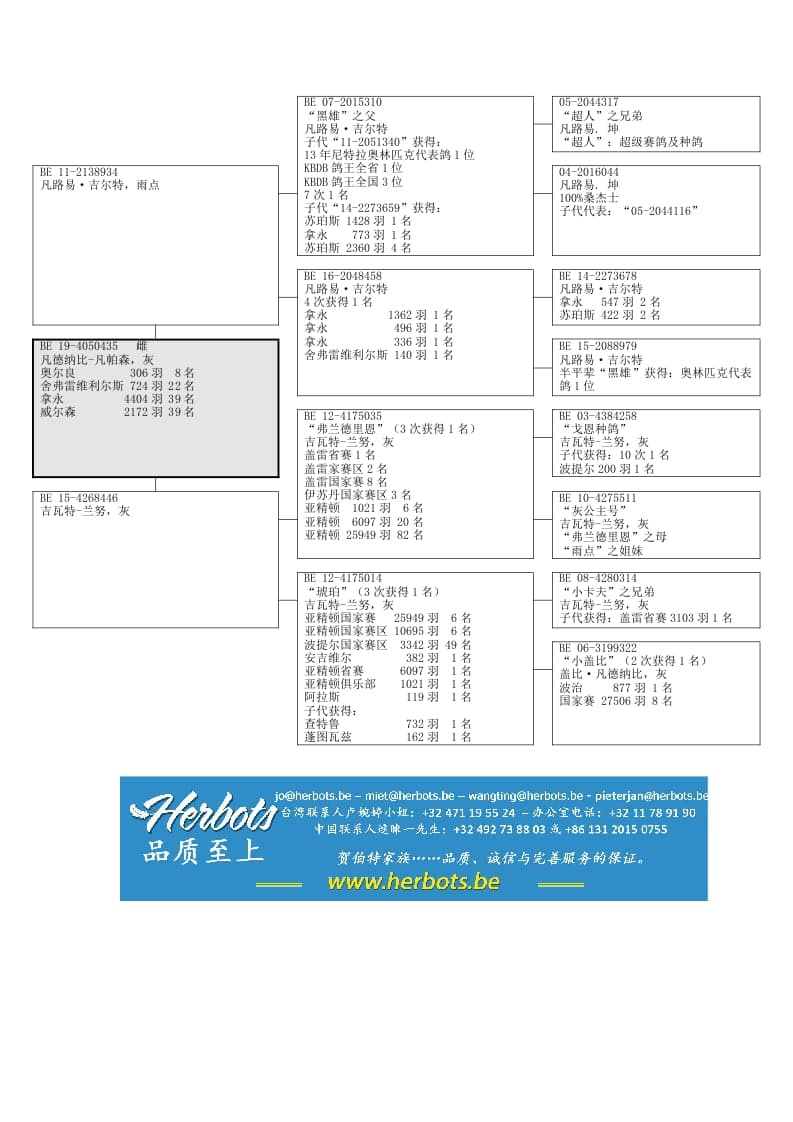 奥尔良 306羽 8名拿永联省 4404羽 39名威尔森省赛 2172羽 39名“13年尼特拉奥林匹克A类代表鸽1位之半兄弟” X“琥珀直女”(吉瓦特-兰努)作育直女