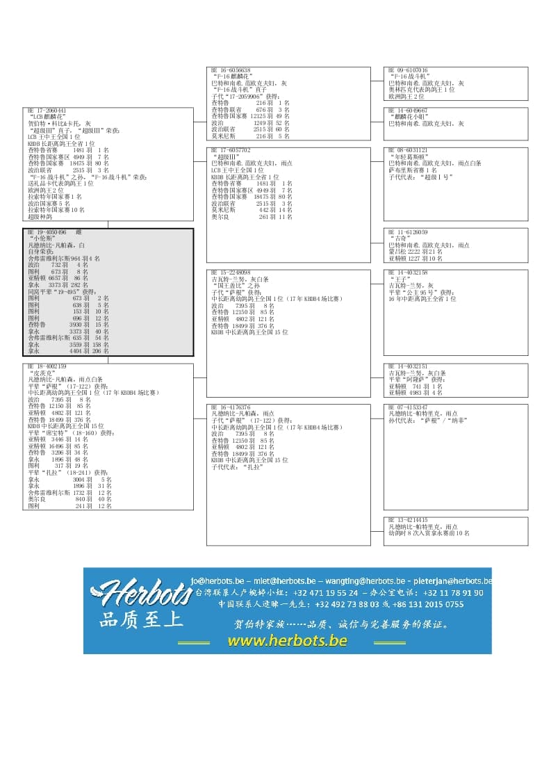 神奇雌鸽!舍弗雷维利尔斯 964羽 4名波治 732羽 4名图利 673羽 8名亚精顿 23258羽 292名同窝平辈获得:19年KBDB中距离鸽王全省3位“萨根之姐妹”17年幼鸽鸽王全国1位(4场KBDB赛))直女