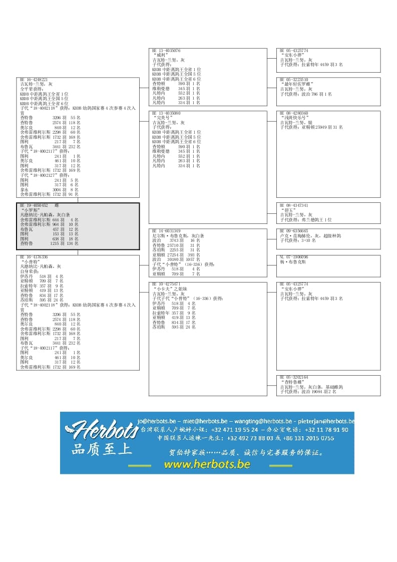 19年中距离幼鸽鸽王3位舍弗雷维利尔斯644羽 4名舍弗雷维利尔斯964羽 10名布鲁瓦 457羽 12名图利 638羽 18名“小胖安东”(吉瓦特-兰努)回血
