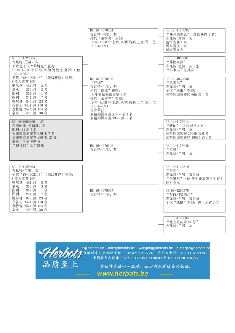 图利 411羽 7名舍弗雷维利尔斯 356羽 7名舍弗雷维利尔斯 986羽 12名“莱姆克之父之兄弟”(19年KBDB幼鸽鸽王全国1位)直女