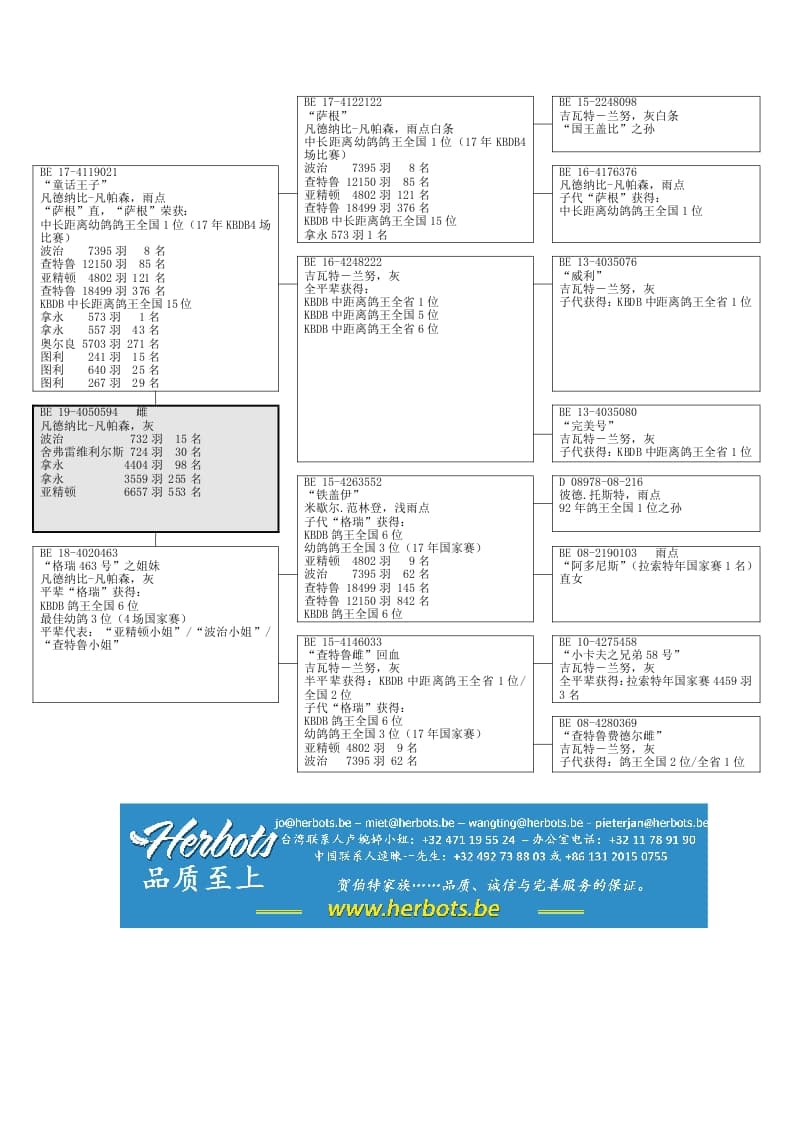 血统:2羽全国鸽王“萨根”/“格瑞”