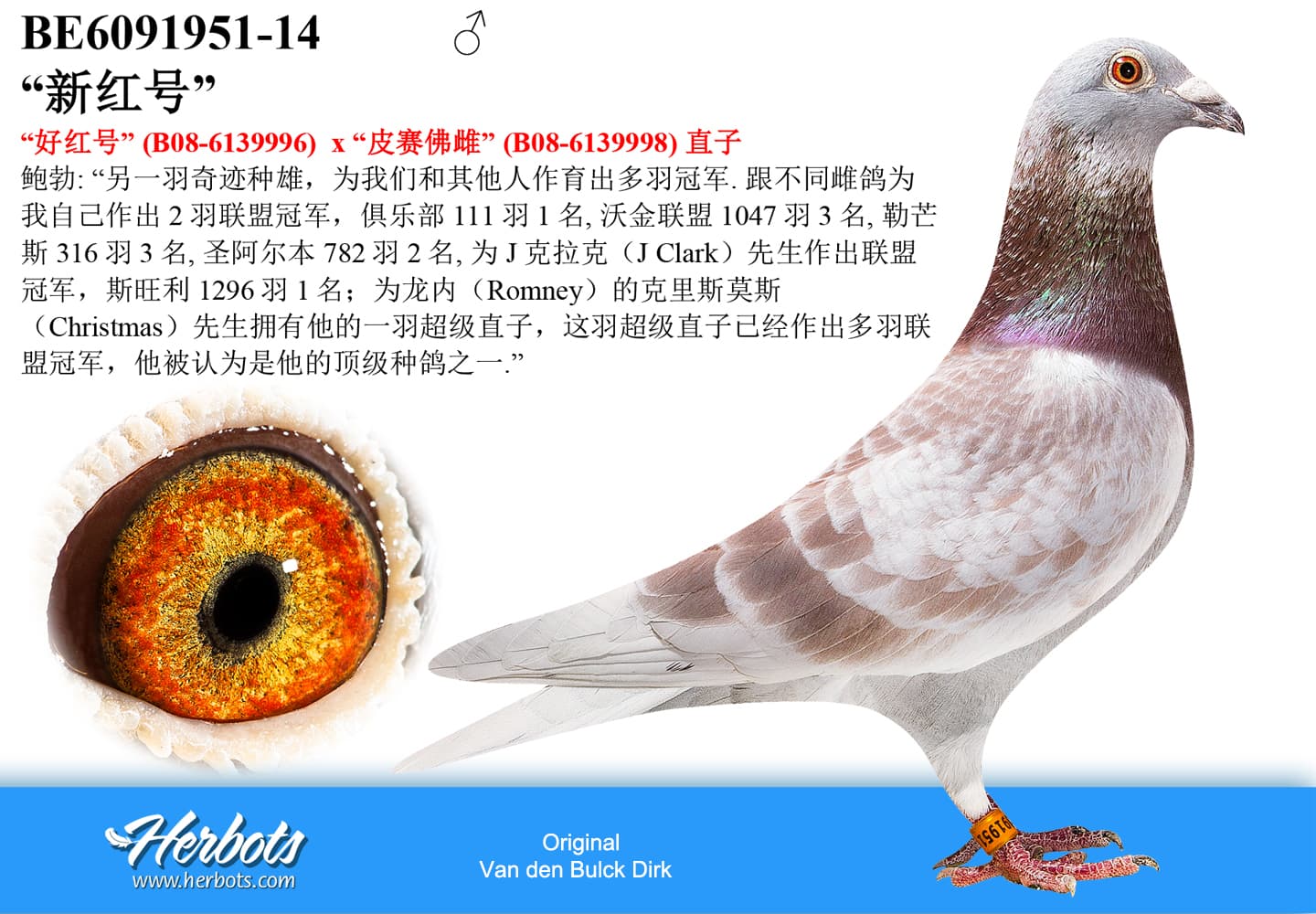 “好红号”X“皮塞佛雌”之孙“好红号”X“奥林匹克罗西塔”之孙全平辈获得:1935 羽6 名2092 羽26 名1374 羽29 名2036 羽38 名