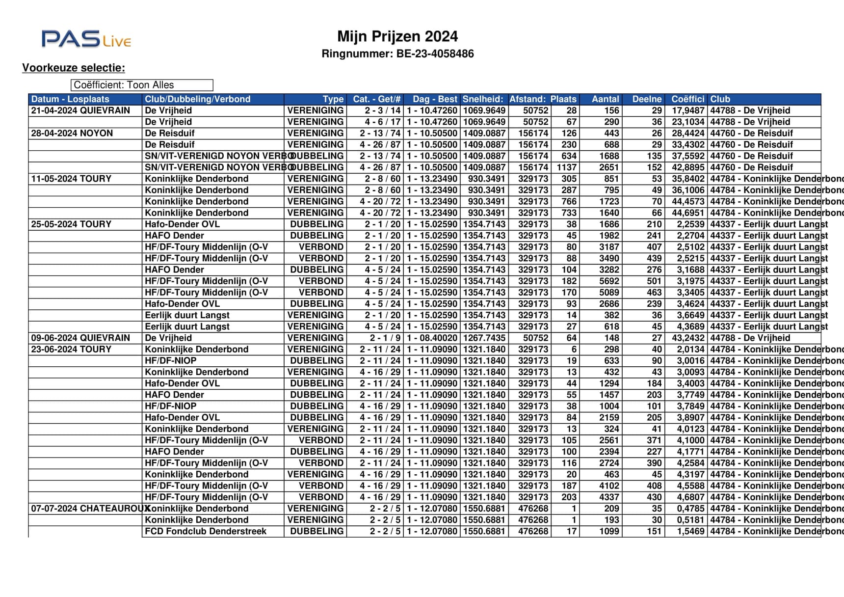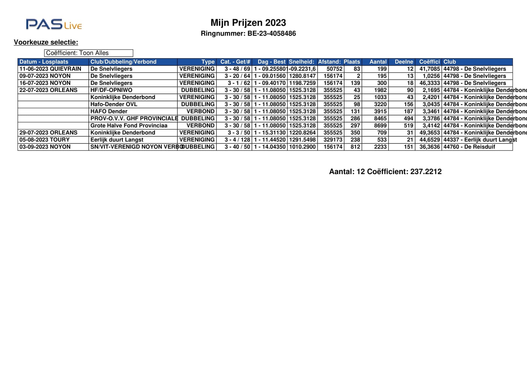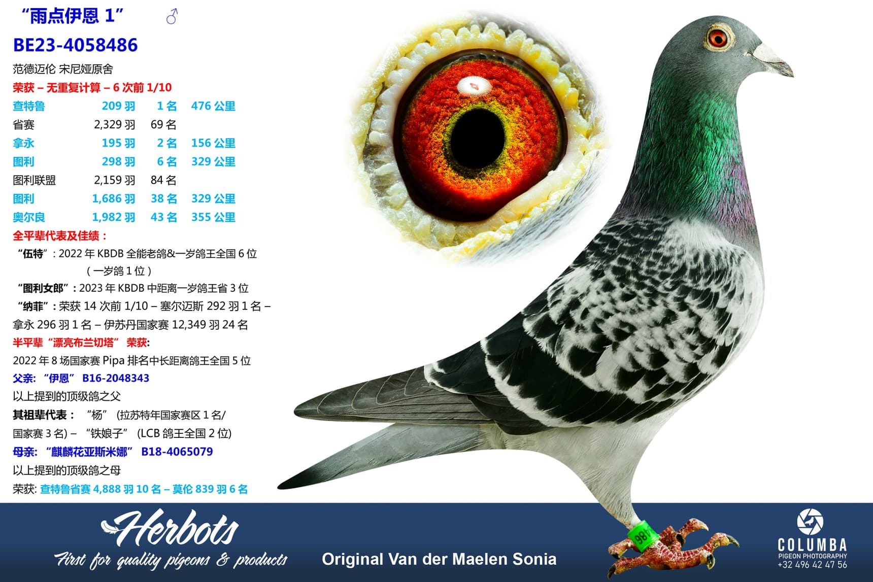 2022年KBDB全能老鸽&一岁鸽王全国6位(一岁鸽1位)