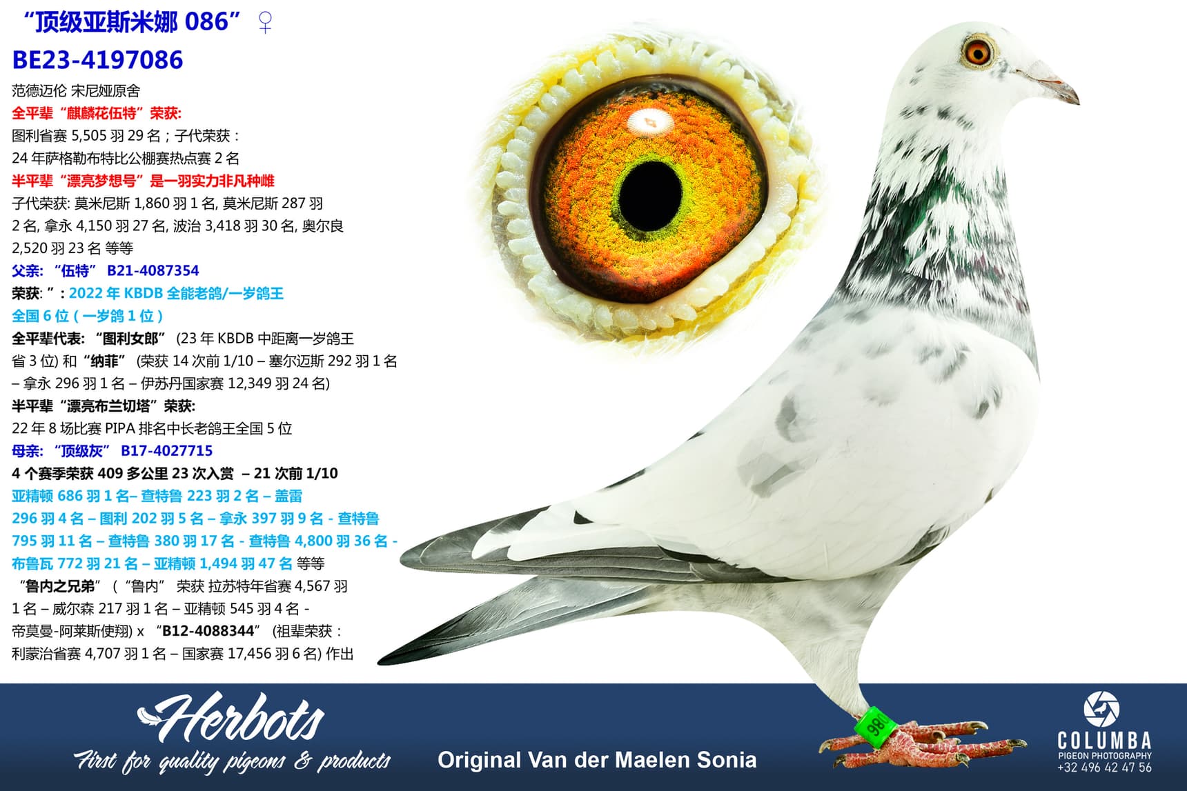 2022年KBDB全能老鸽/一岁鸽王全国6位(一岁鸽1位)