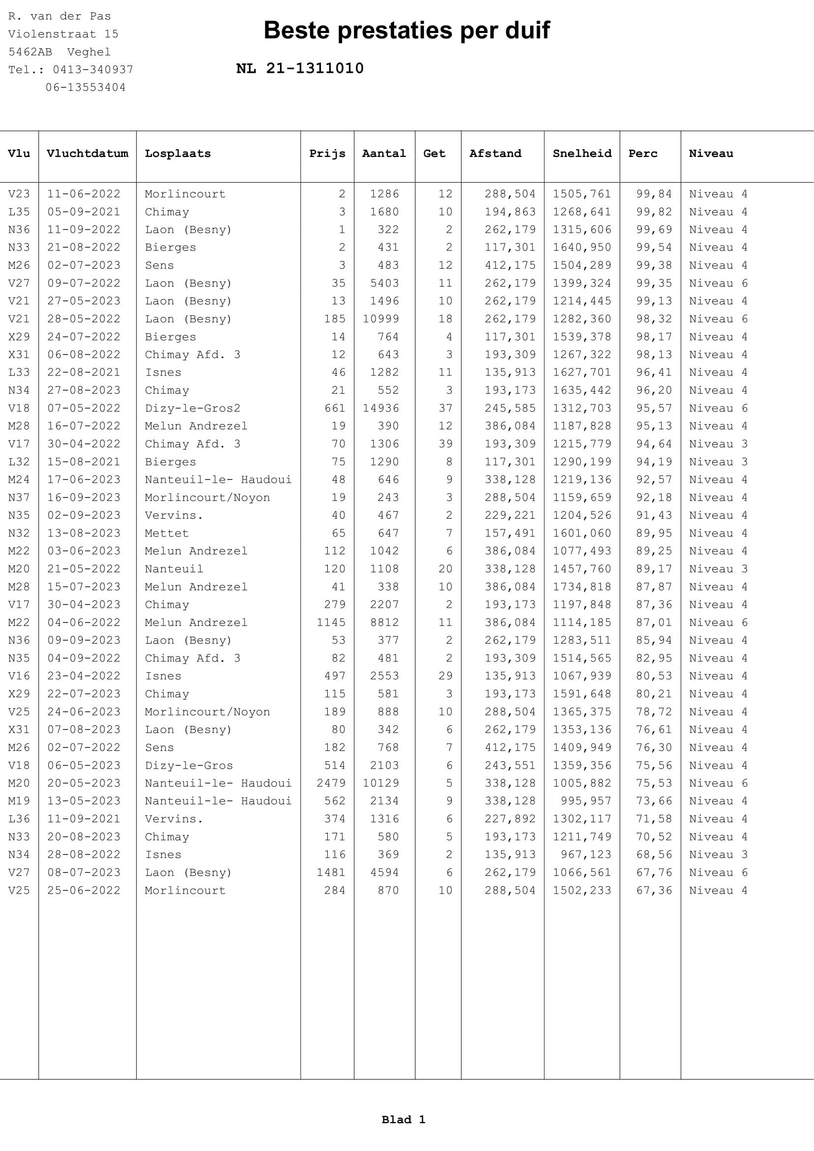 拉昂 262公里 1,496羽 13名