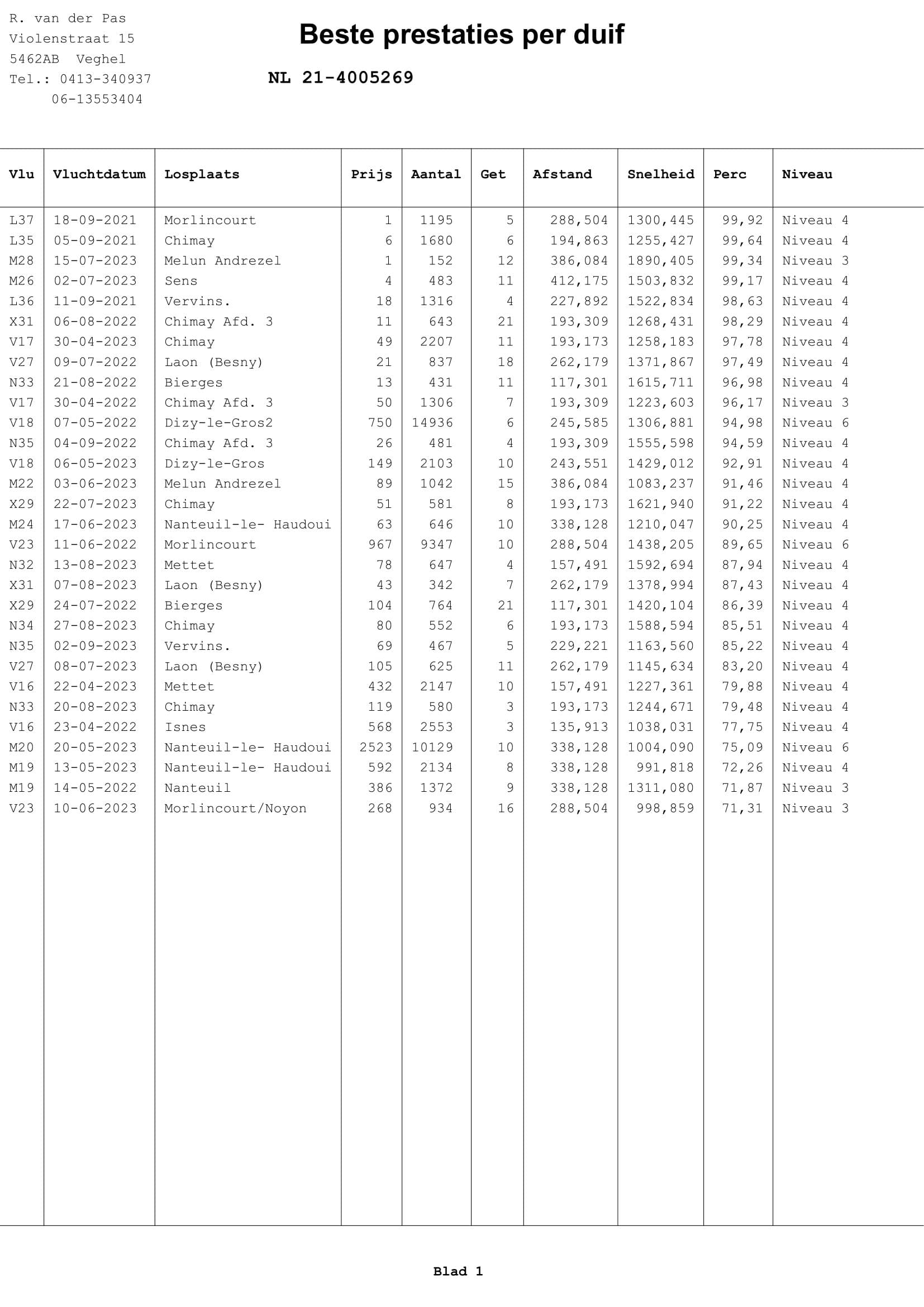 拉昂    262公里  837羽    21名