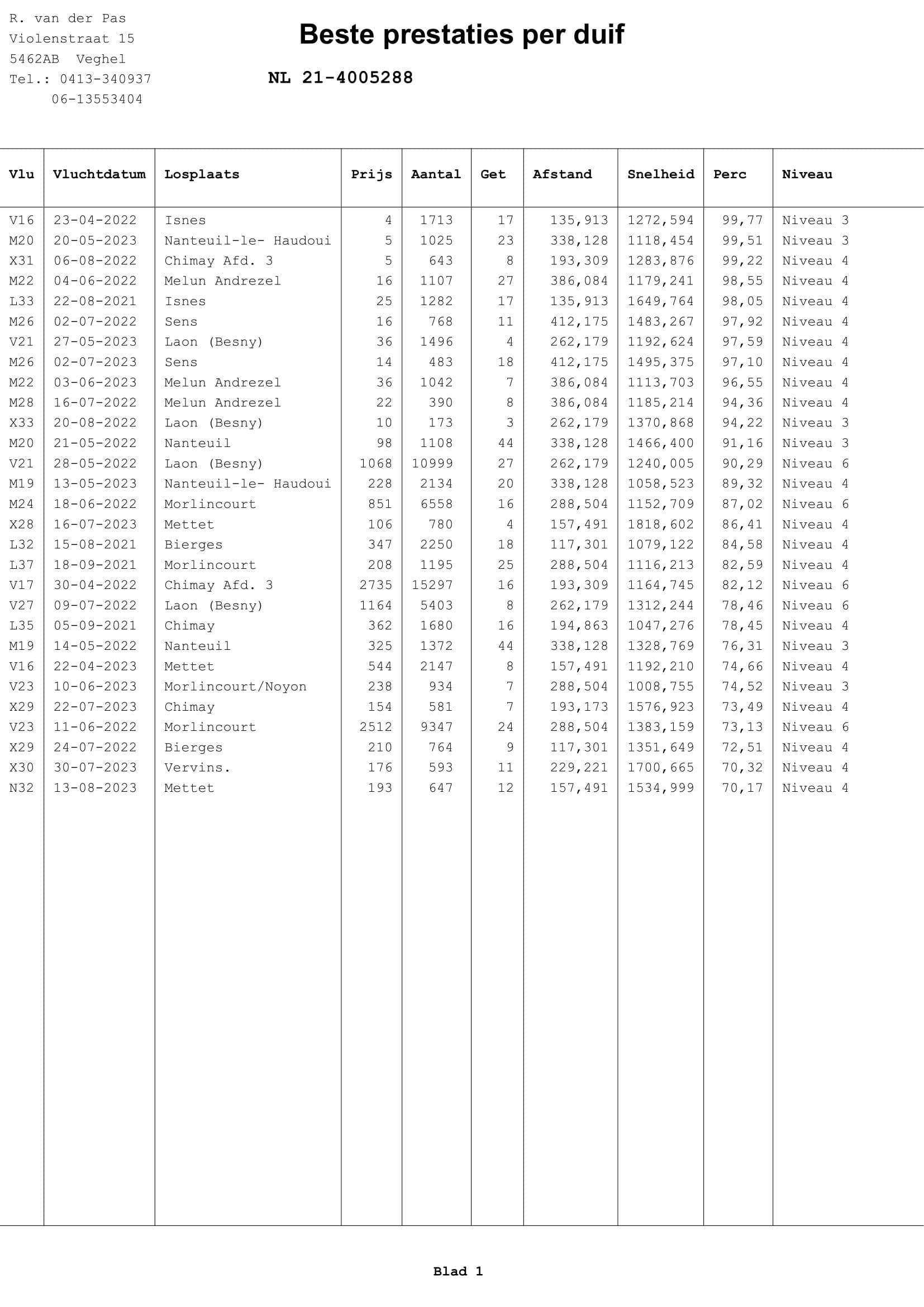 拉昂    262公里  1,496羽  36名