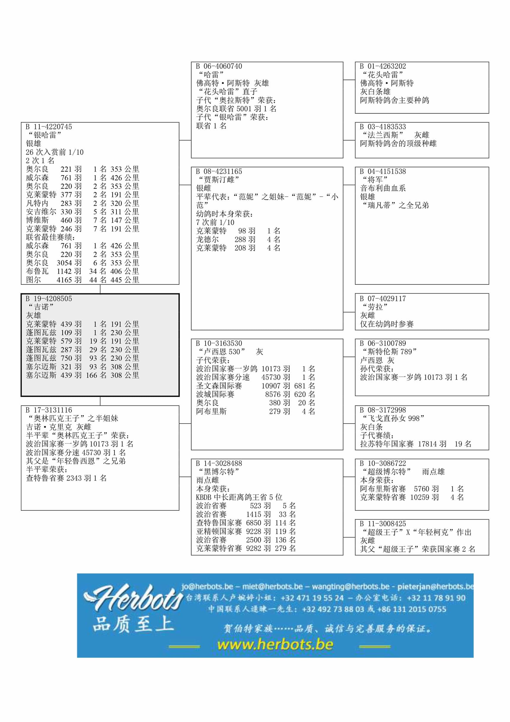 荣获 – 无重复计算克莱蒙特 439羽 1名 191公里蓬图瓦兹 109羽 1名 230公里克莱蒙特 579羽 19名 191公里