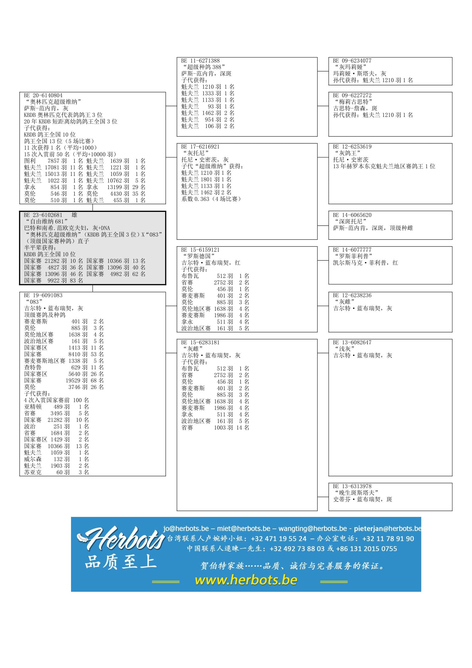 波治国家赛 8410羽 53名 查特鲁国家赛 19529羽 68名