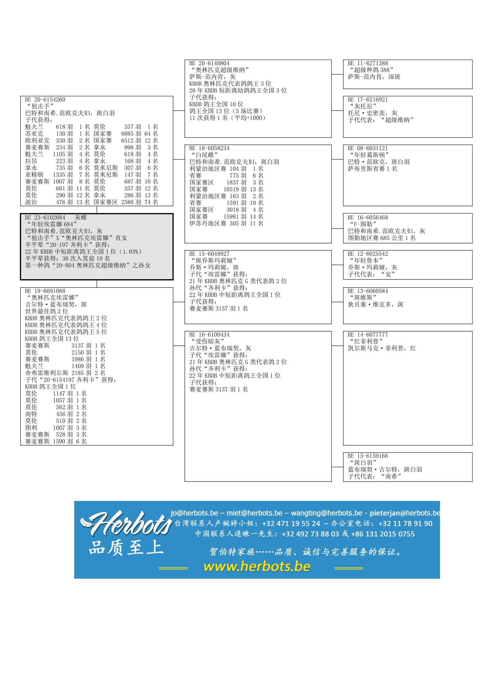 半平辈(同母)“齐利卡”获得: 22年KBDB中距离老鸽鸽王全国1位