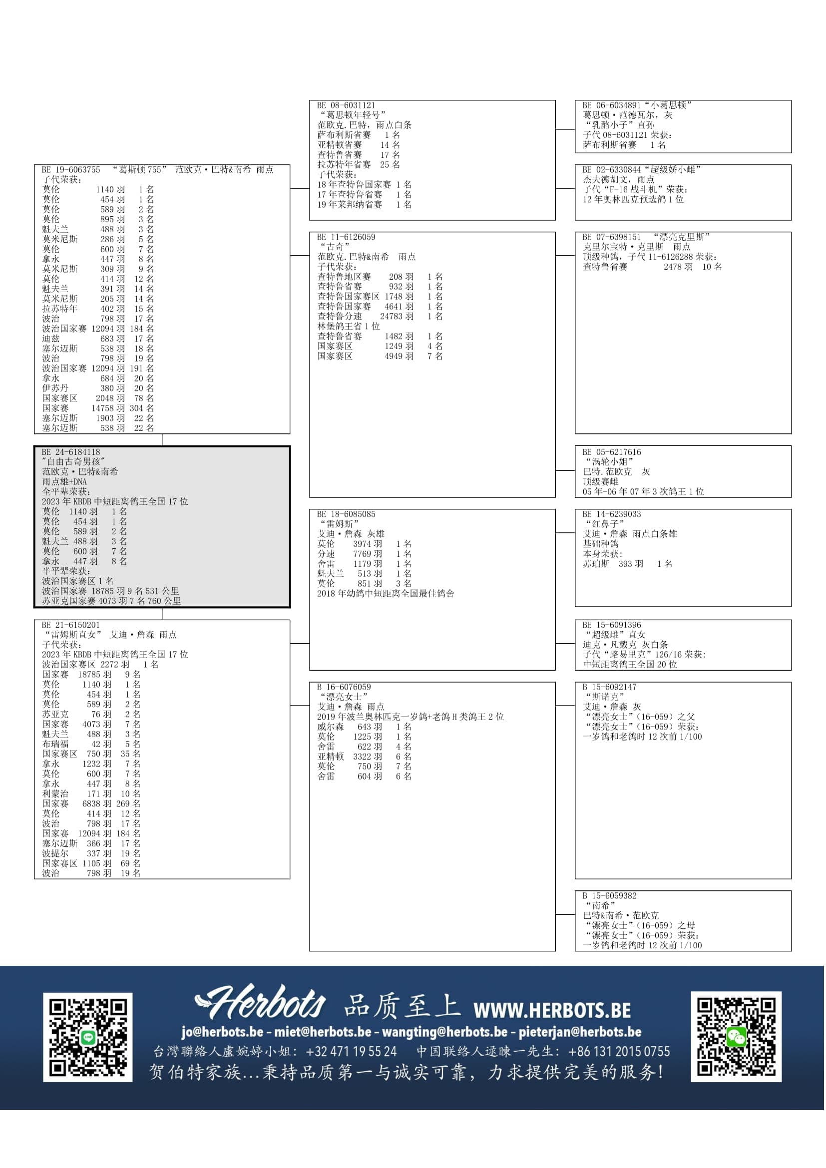 “雷姆斯” (舍雷 1,179羽1名 – 魁夫兰 513羽1名 - 莫伦 3,974羽1名 (省赛一岁鸽组分速7,769羽1名- 莫伦 851羽3名 – 等等) x “漂亮女士” (2019年波兹南奥林匹克H类鸽王 – 威尔森 643羽1名 – 莫伦 1,225羽1名 - 舍雷622羽4名 – 舍雷 604羽6名 – 亚精顿 3,322羽6名- 莫伦 750羽7名 - 舍雷 1,482羽7名 – 波治 3,621羽9名 – 等等) 作出