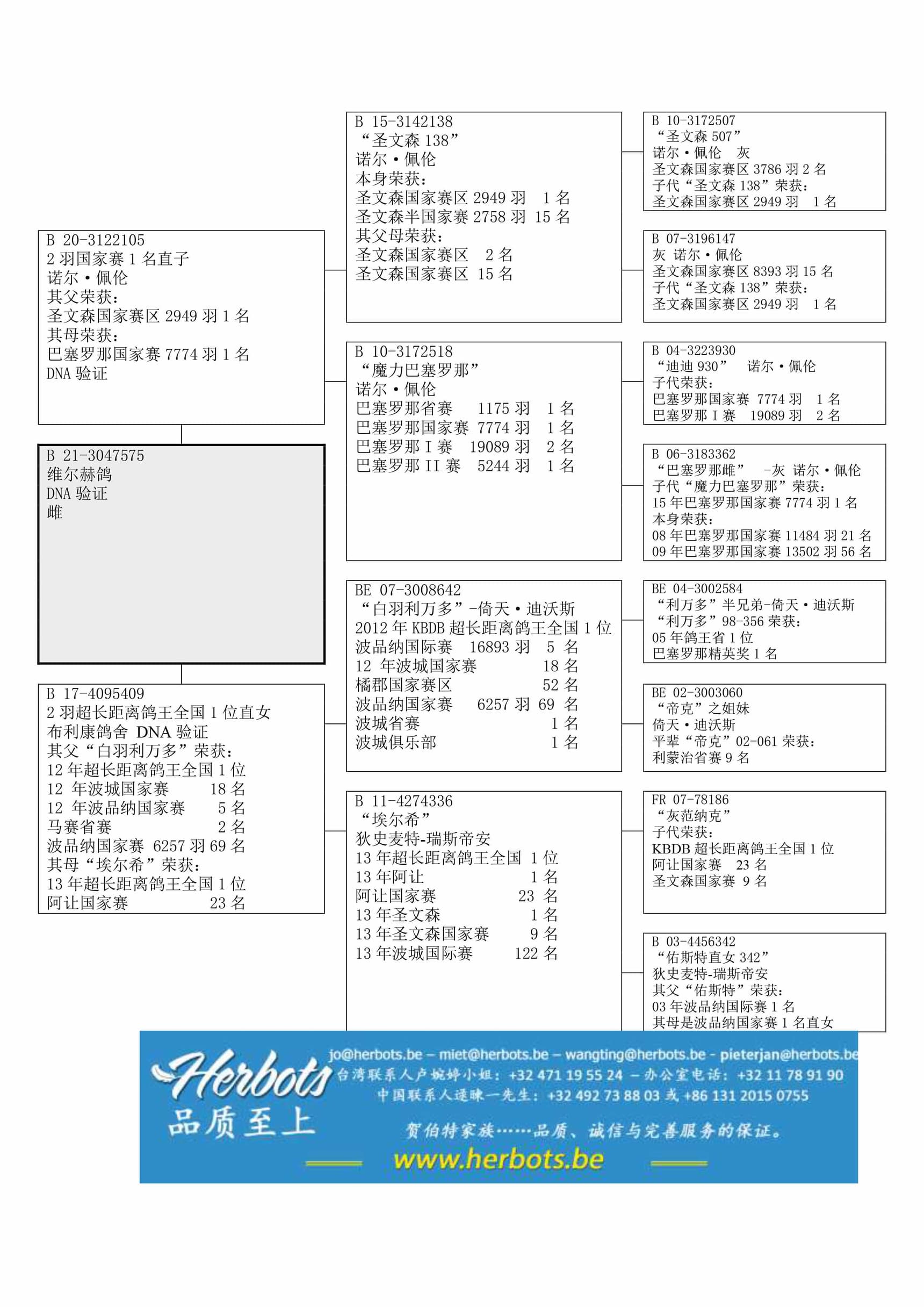 作育者: VELGHE PIGEONS 维尔赫信鸽