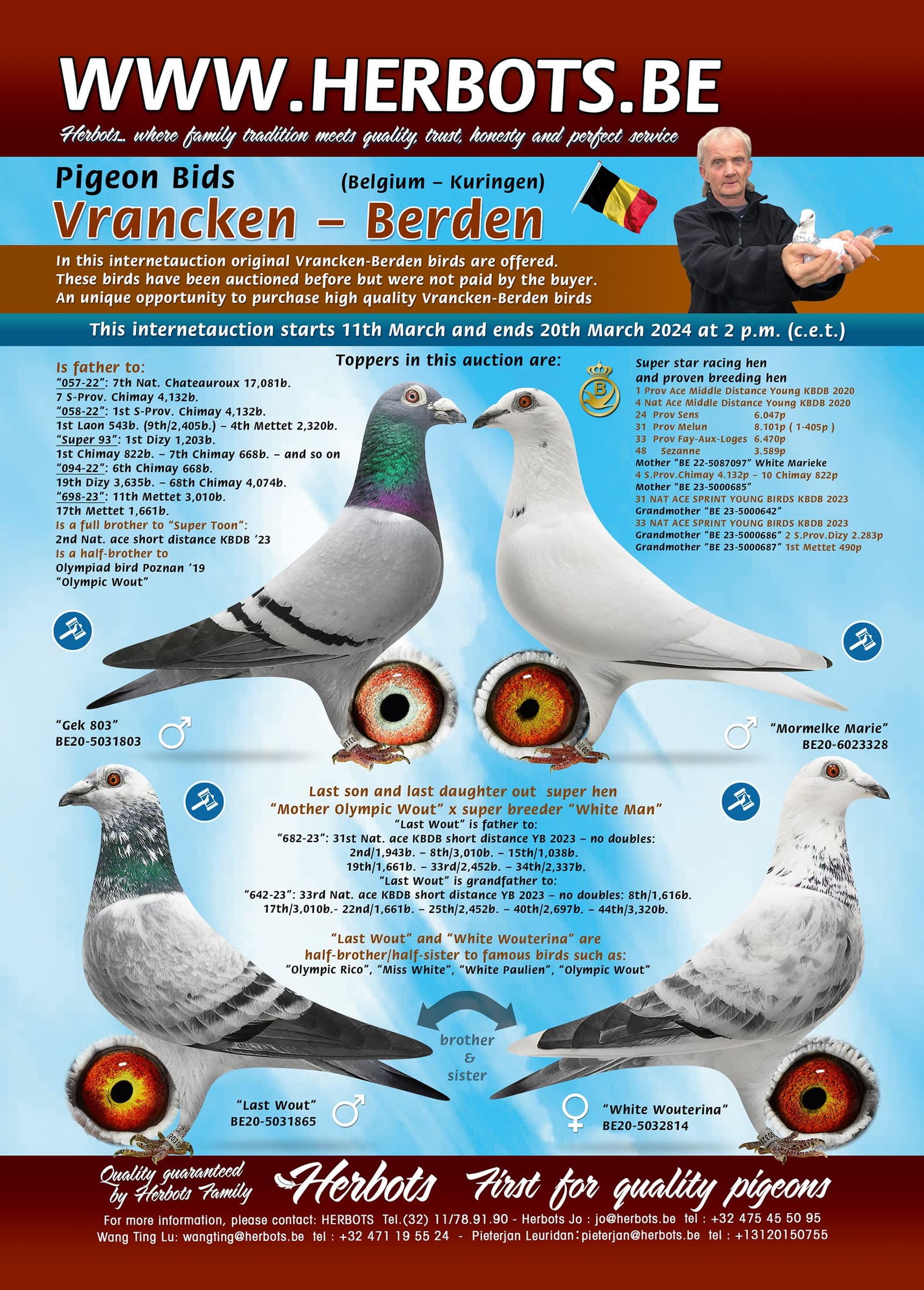 HERBOTS IMEX 贺伯特基础种鸽“短小” 和新超级明星种鸽直子