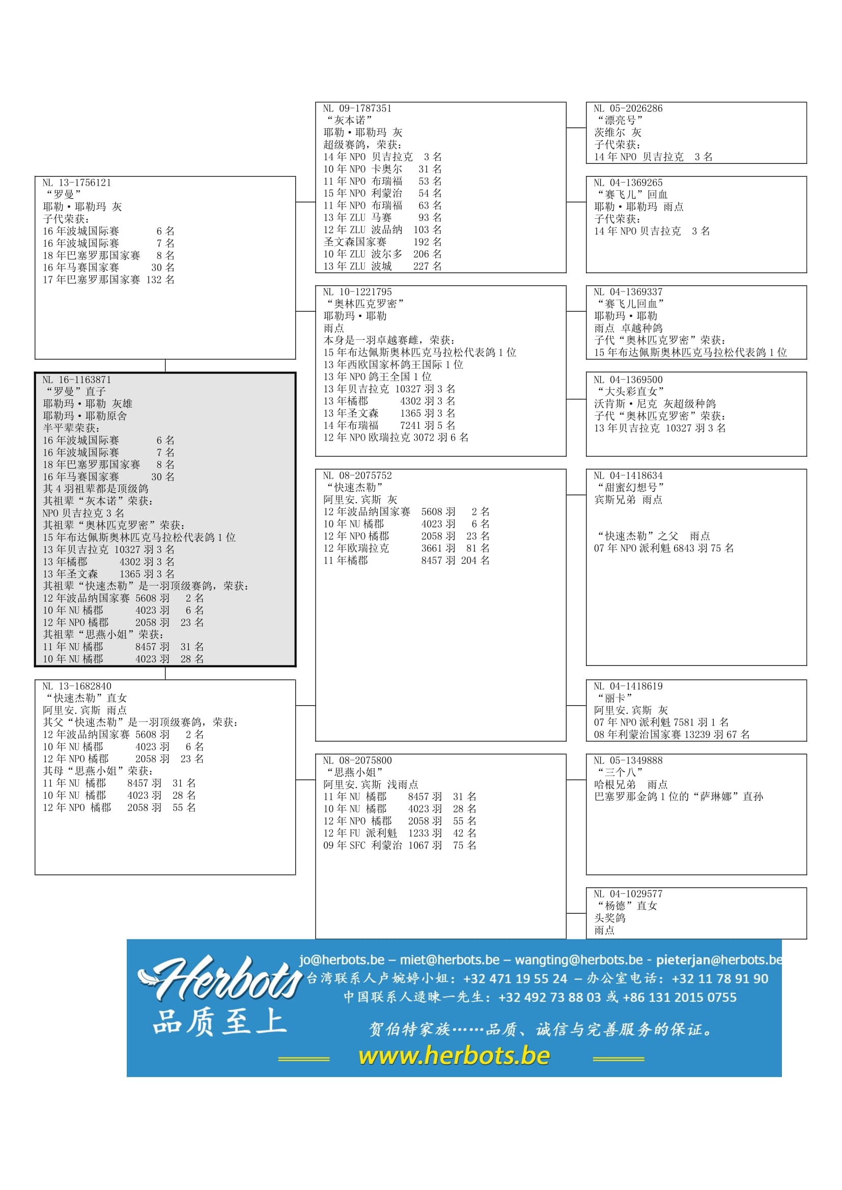 布达佩斯奥林匹克马拉松代表鸽 - 贝吉拉克国家赛 10,327羽3名 - 橘郡国家赛 4,302羽3名 - NPO 圣文森 1,365羽3名 - 布瑞福国家赛 7,241羽5名 - NPO 欧瑞拉克 3,072羽6名