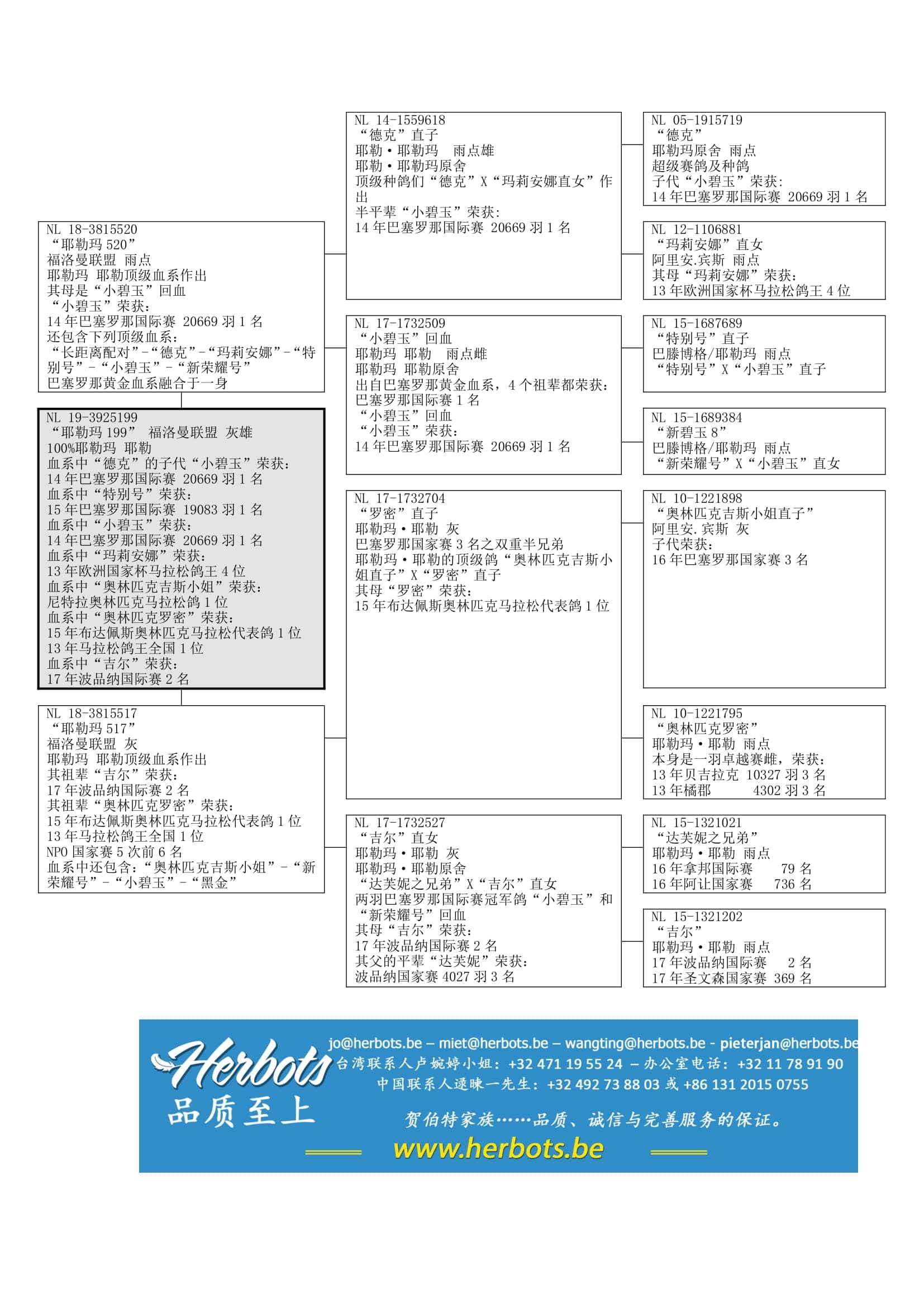 “小碧玉”(巴塞罗那国际赛 20,669羽1名)双重直孙女