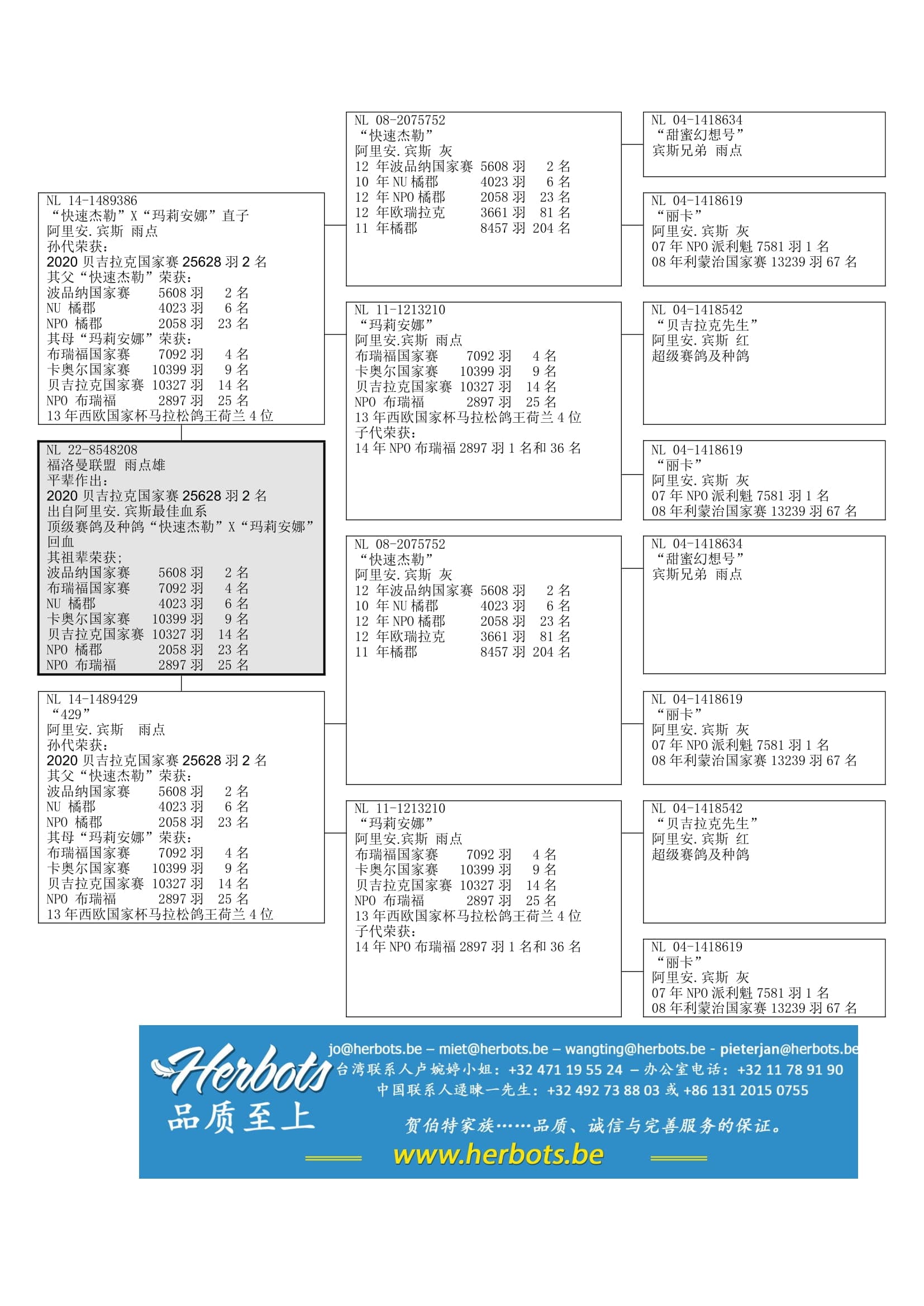 荣获: 布瑞福国家赛 7,092羽4名 – 卡奥尔国家赛10,399羽9名 – 贝吉拉克国家赛 10,327羽14名 – NPO 布瑞福 2,897羽25名