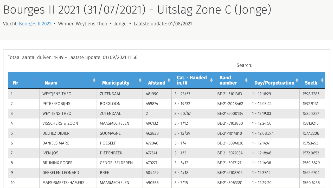 波治国家赛区  1,489羽 1名   481公里