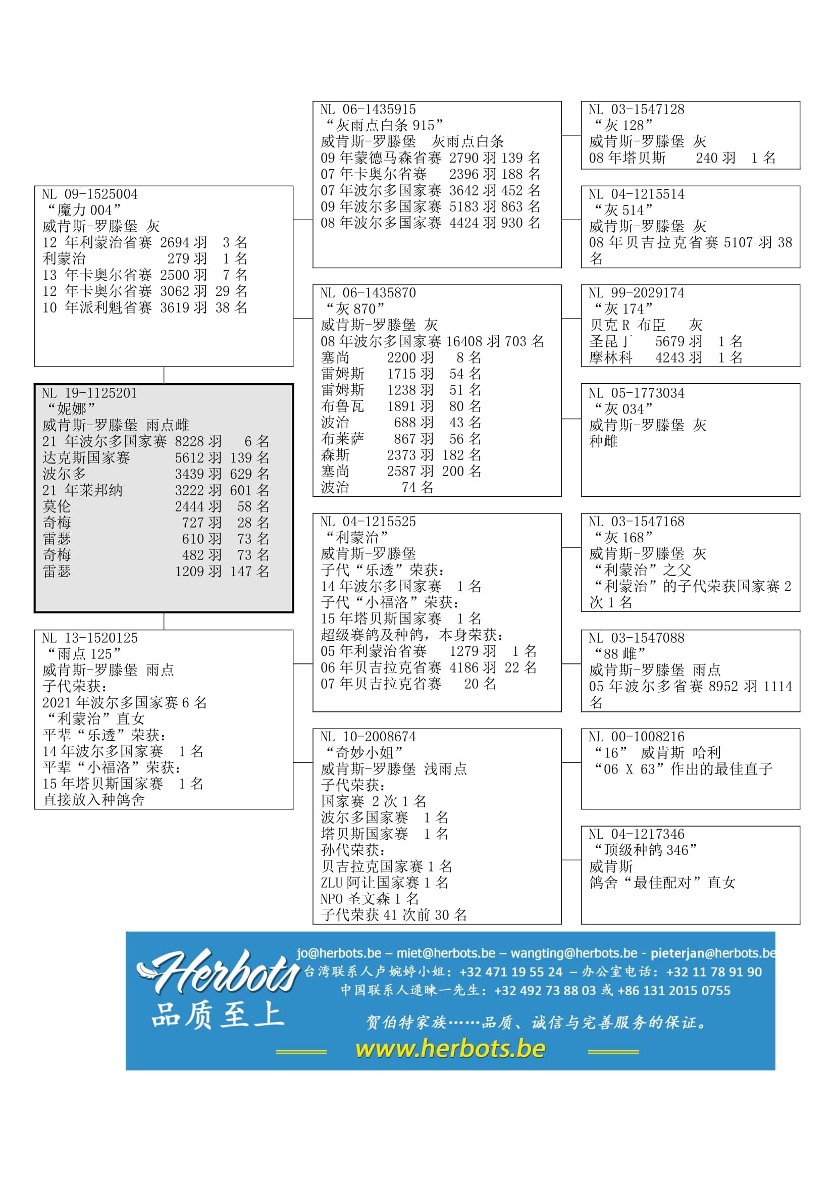 荣获 :利蒙治省赛 1,279羽1名;其子代代表:“乐透” (14年波尔多国家赛1名) 和“小福洛” (15年塔贝斯国家赛1名)