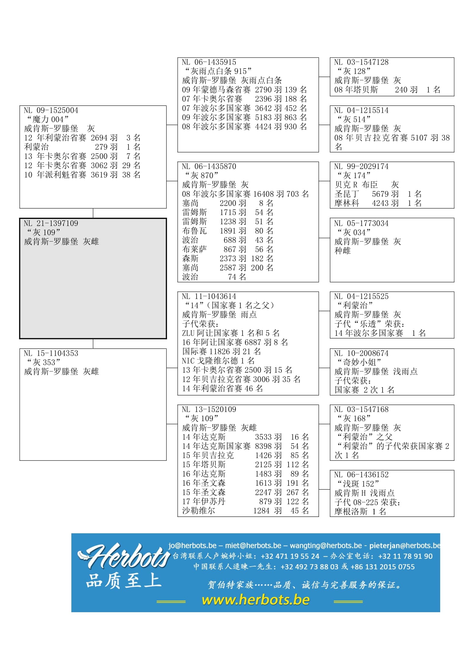 同父半平辈荣获: 阿让 ZLU国家赛1名和5名 – 阿让国家赛 6,887羽8名 – 阿让国际赛 11,826羽21名 – 卡奥尔省赛2,500羽15名 – 贝吉拉克省赛 3,006羽35名 -