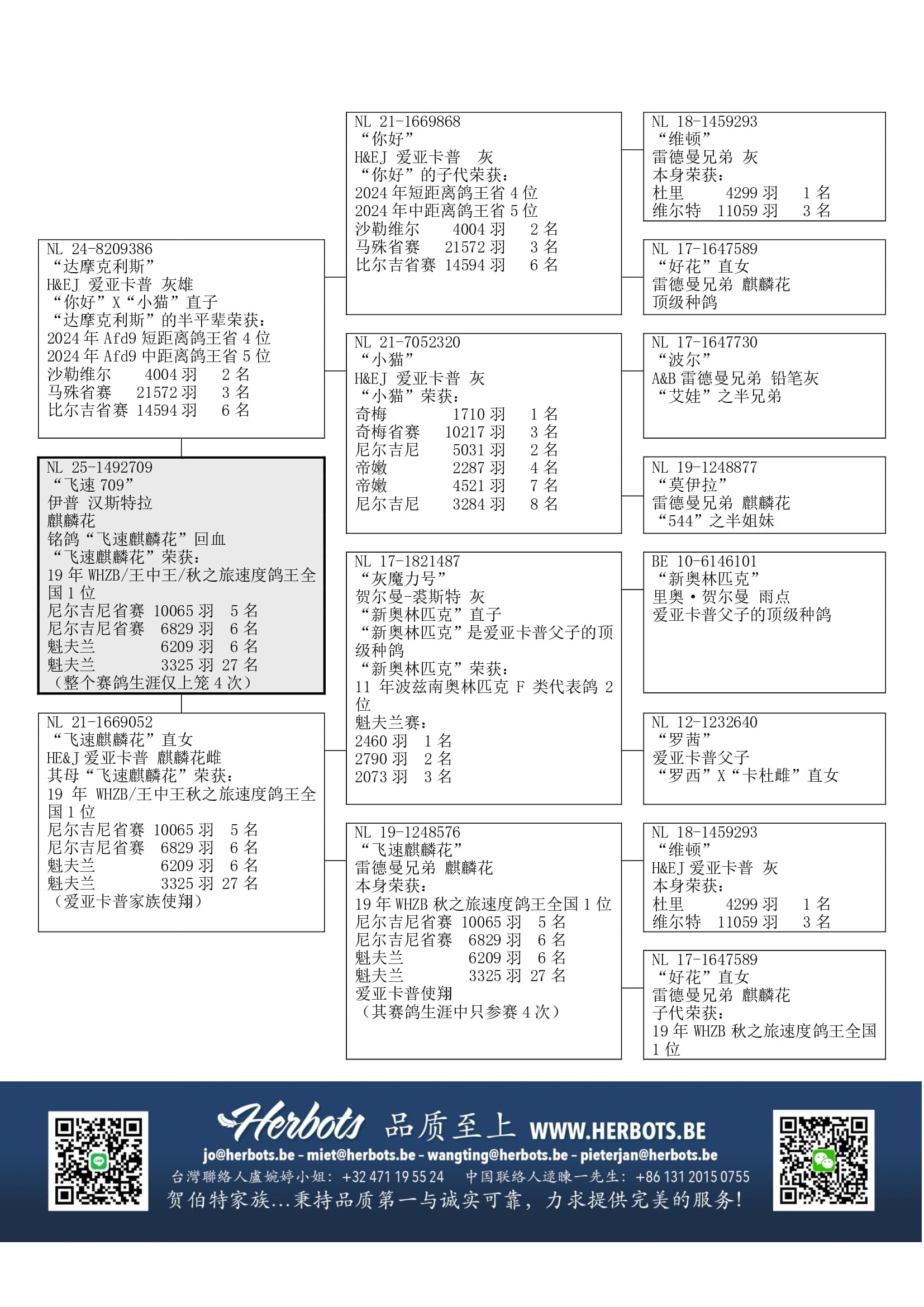“你好”的子代荣获:2024年短距离鸽王省4位 –2024年中距离鸽王省
