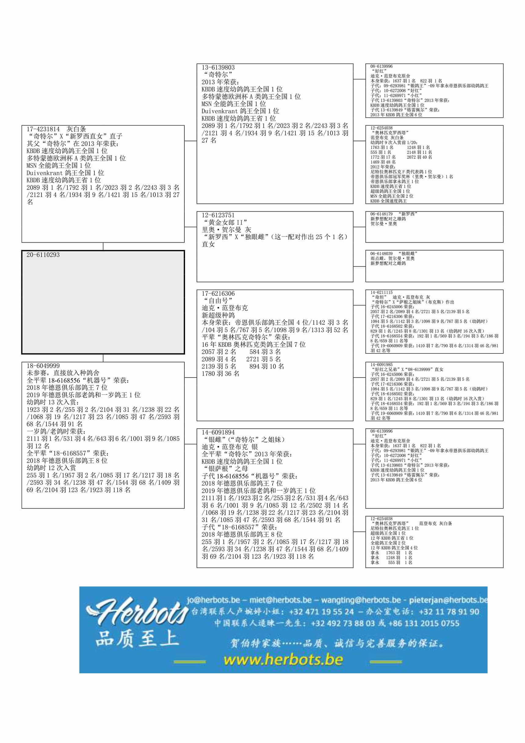 其祖辈“自由号”荣获:帝恩俱乐部鸽王4位 – 1,142羽3名 - 1,084羽5名 – 767羽5名 – 1,098羽9名