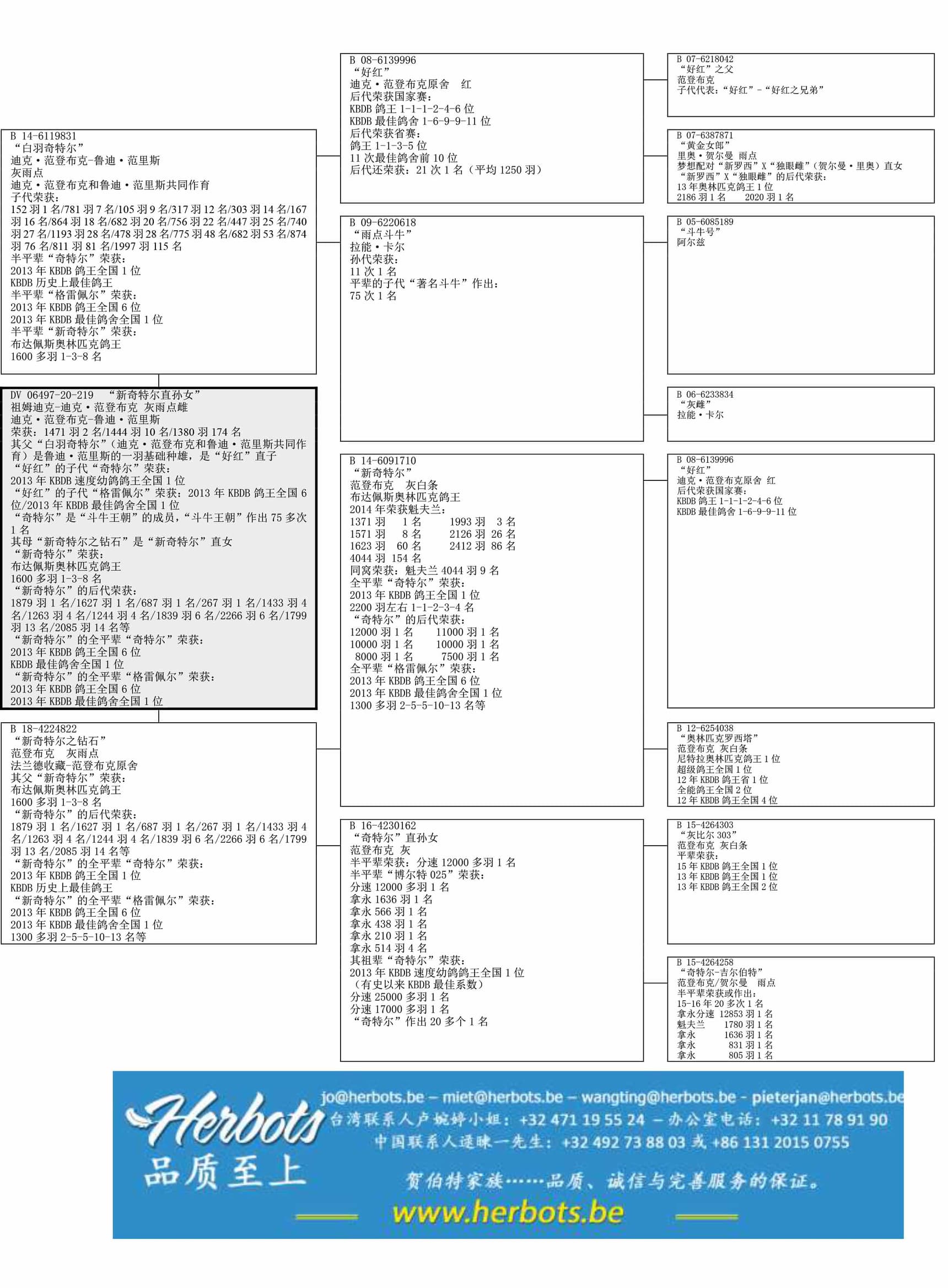 “新奇特尔”直孙女. “新奇特尔” 荣获: 2014年布达佩斯奥林匹克代表鸽1,371羽1名 – 1,993羽3名 – 1,571羽8名 – 2,126羽26名等
