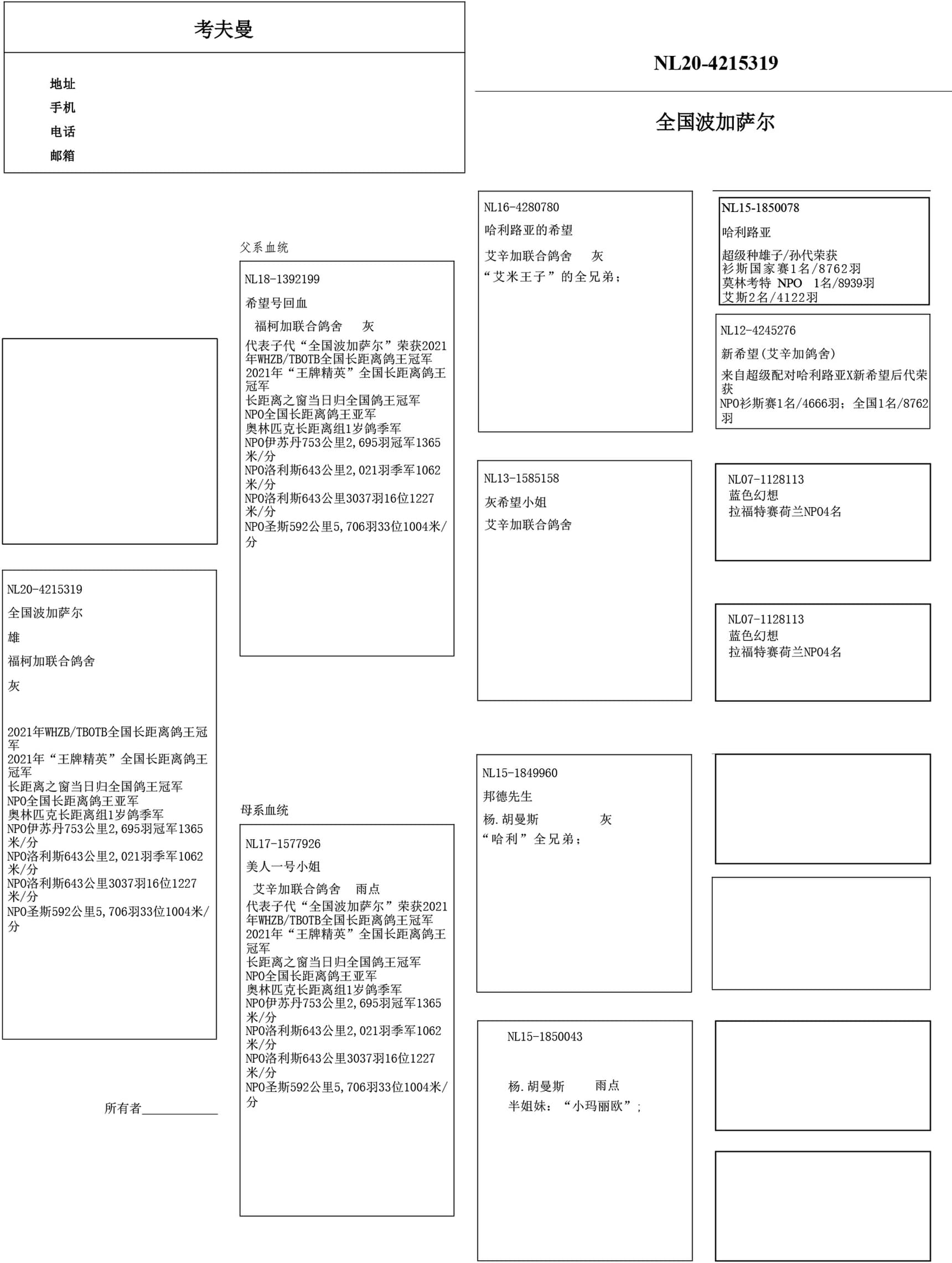 作育者: FOKKINGA R&S COMB. 福金加 R&S 联合鸽舍
