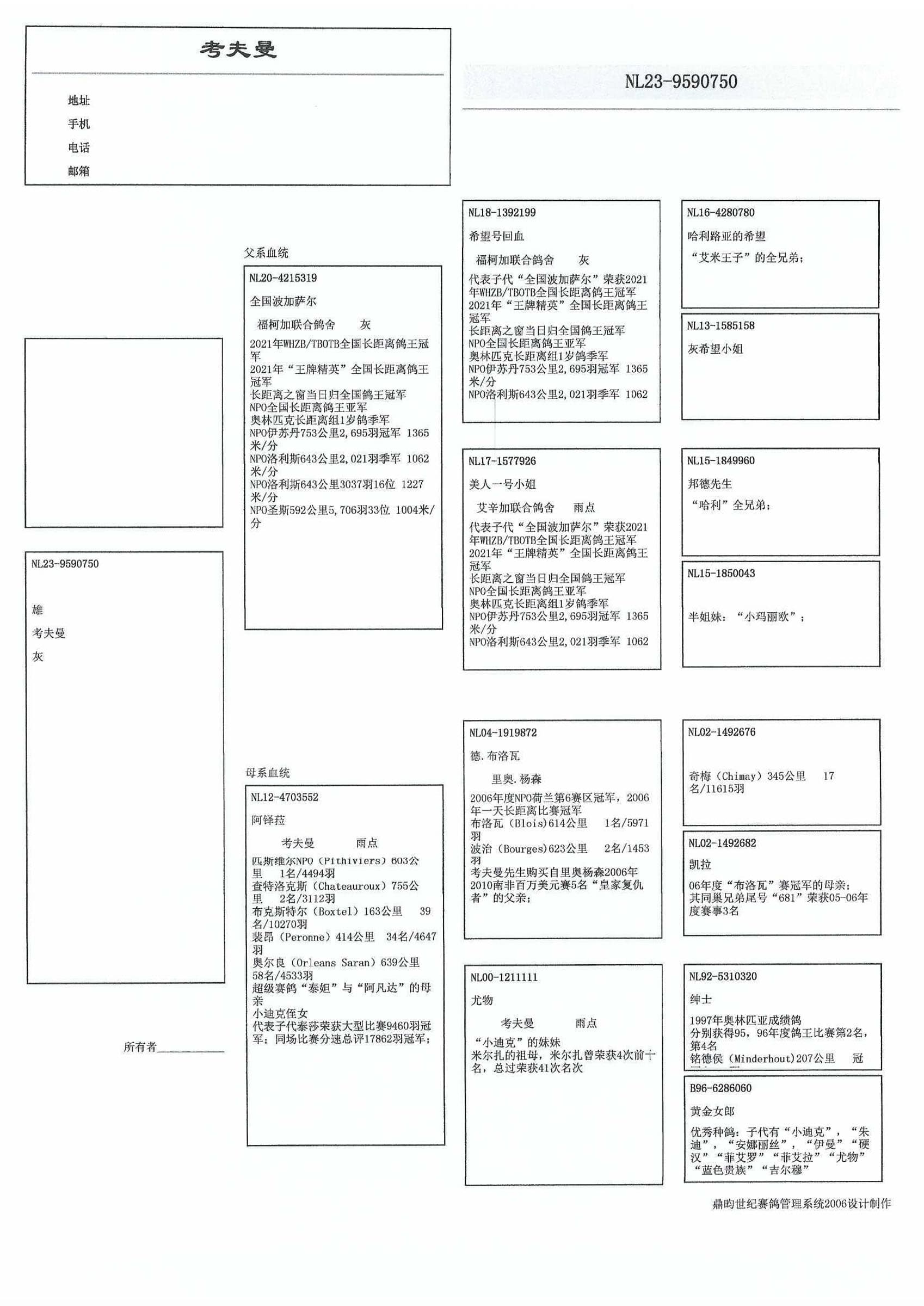 福柯加联合鸽舍x 杨.胡曼斯鸽舍 (“哈利”血系)