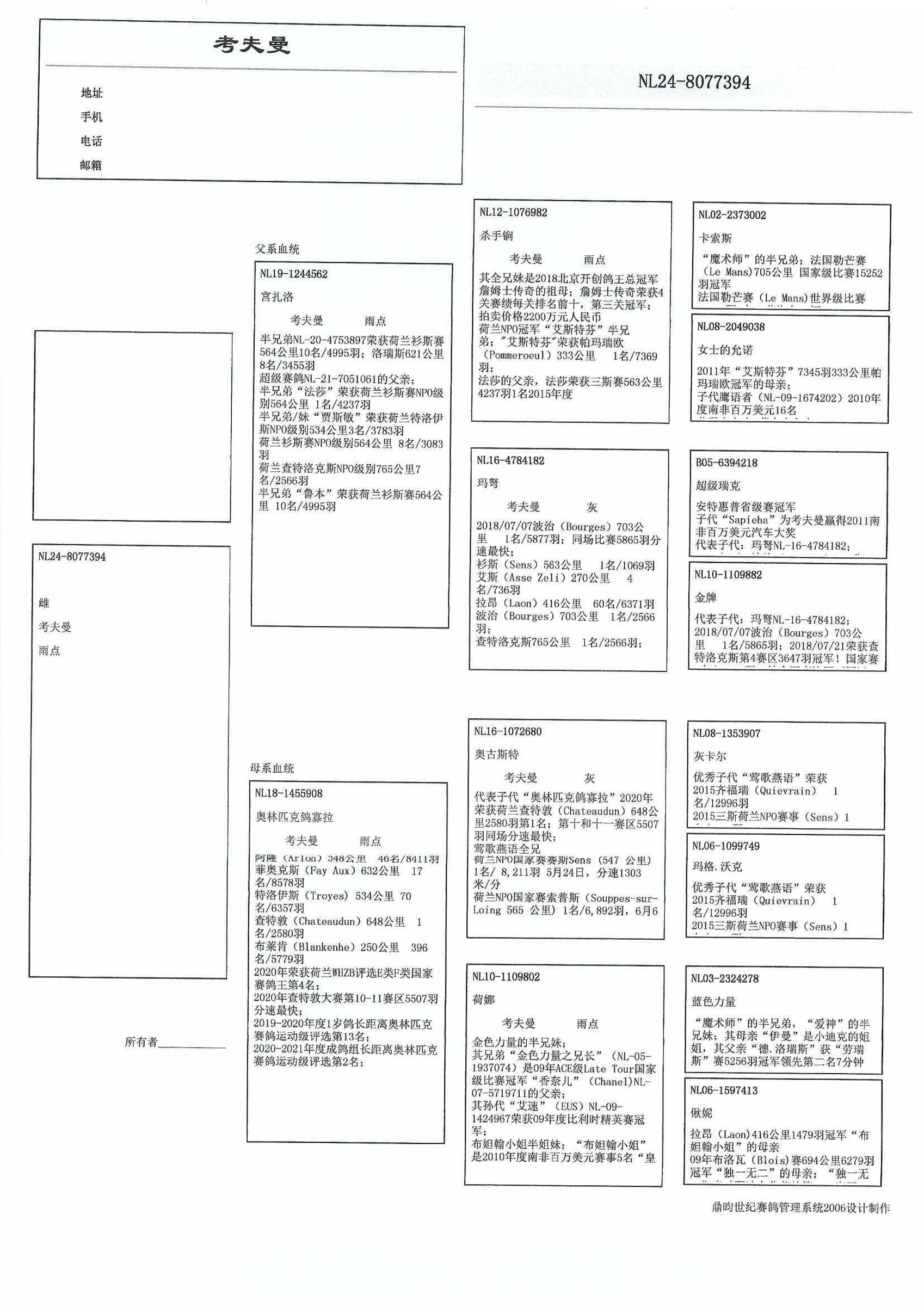 3名 鸽王评选 NPO “雌鸽杯” 2021