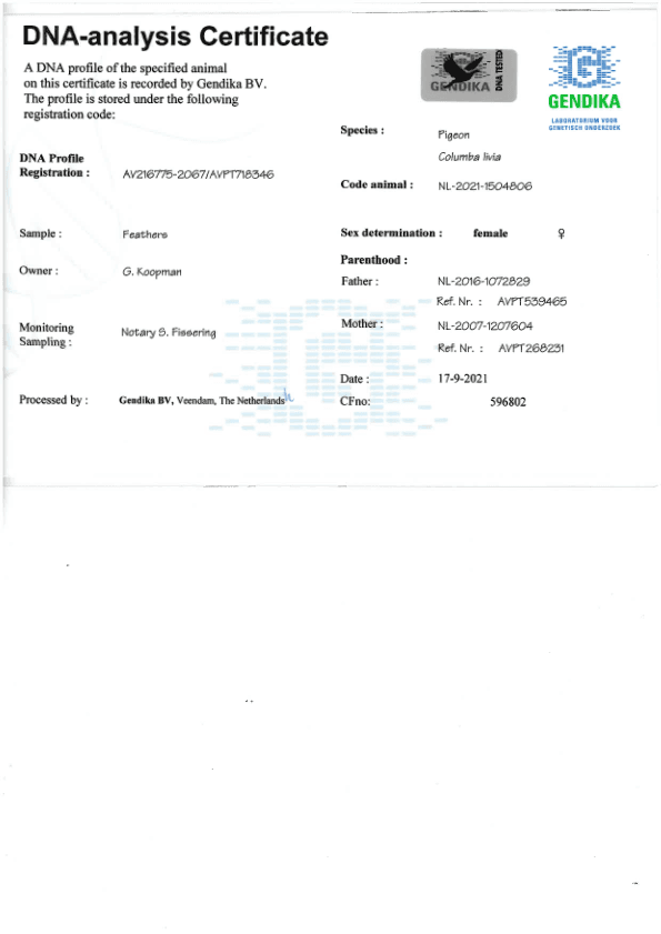 代表孙代:“斯凡” (1名 NPO 衫斯 4,995羽)