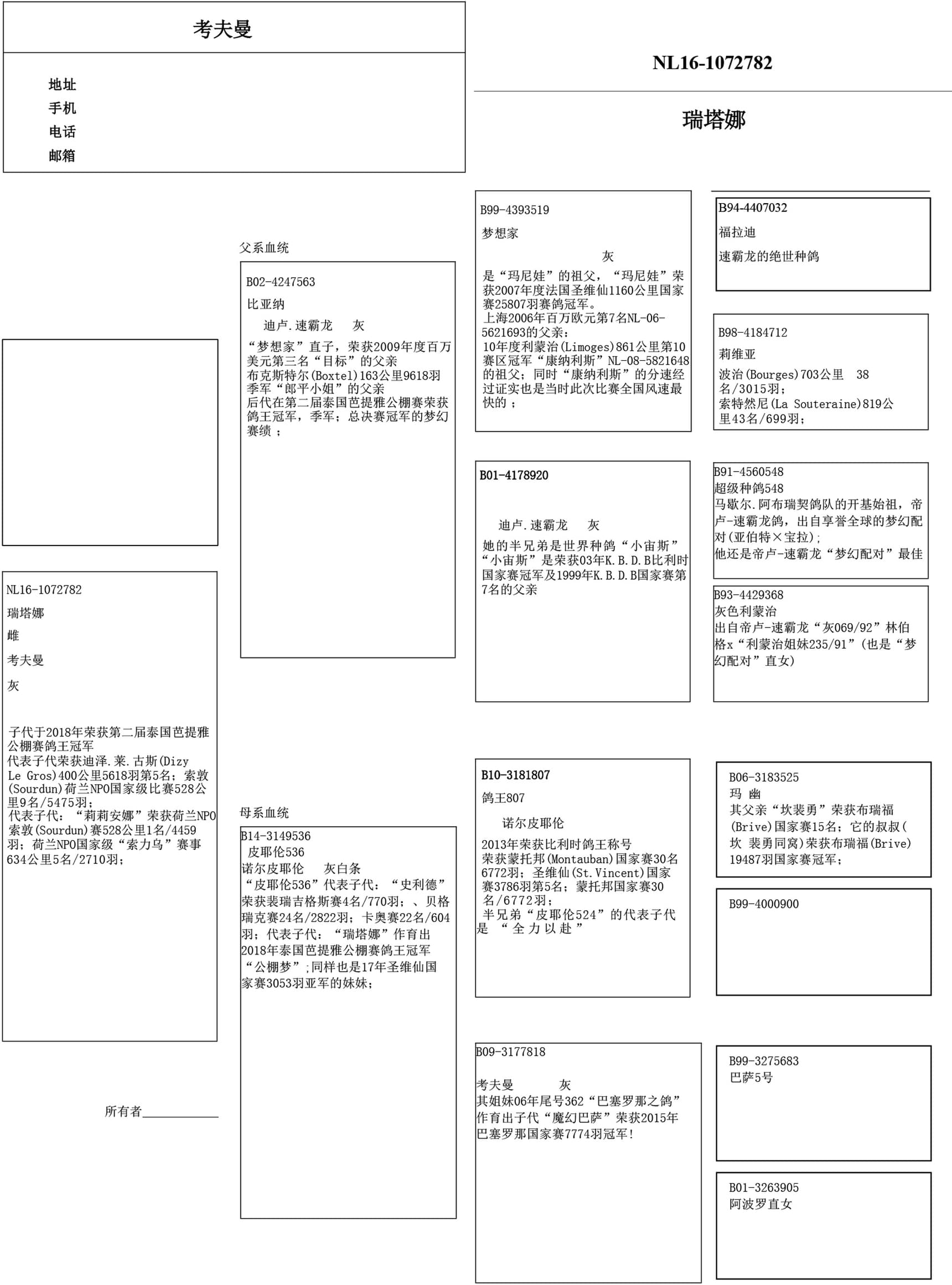 同父半兄妹: “玛尼王小姐” (圣维仙长距离国家赛1名/25807羽)
