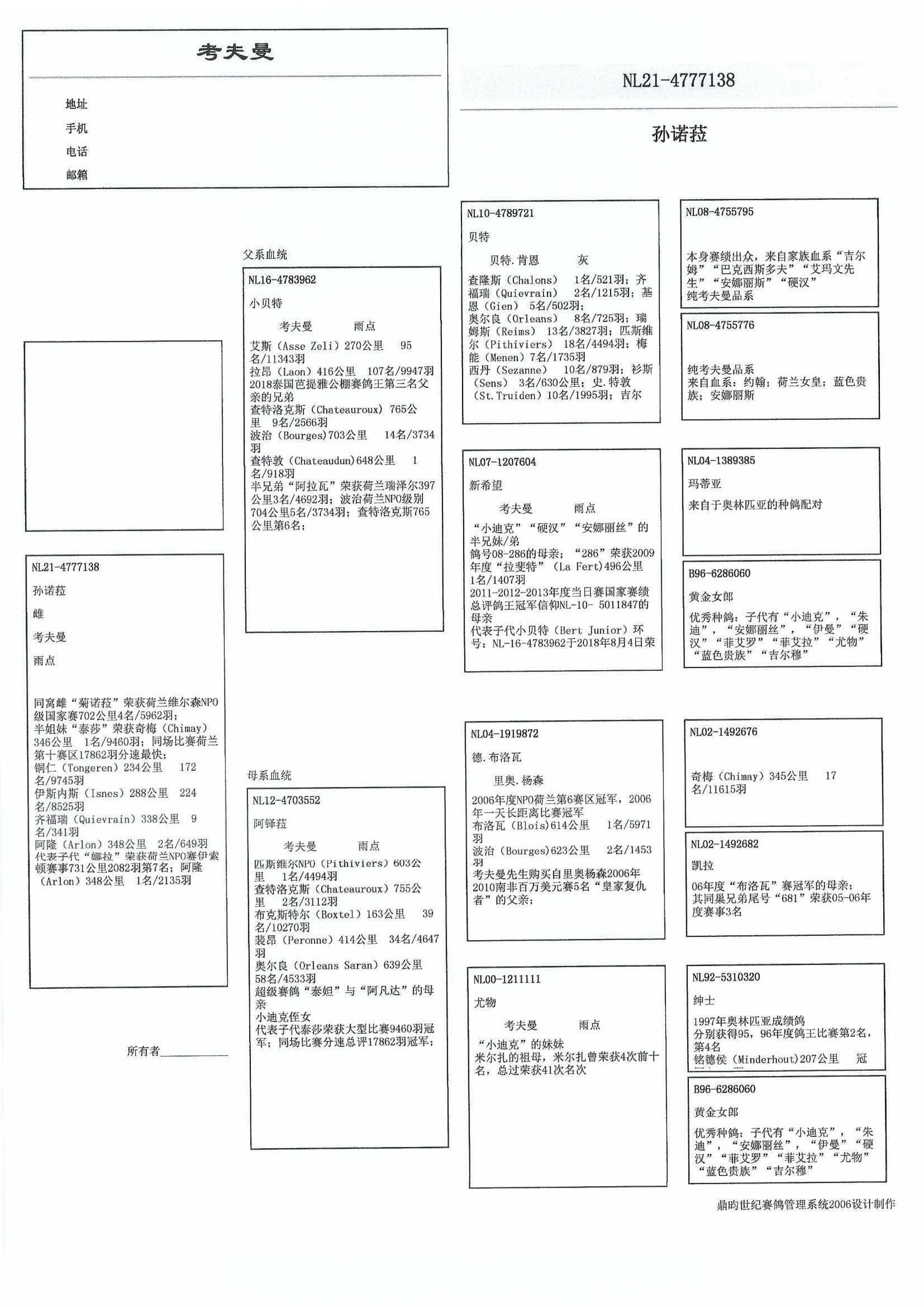 “贝特” (1名 全国 当日归赛事鸽王排位 “长镜头”评选 ’04)  x “新希望” (“黄金女郎”之女)