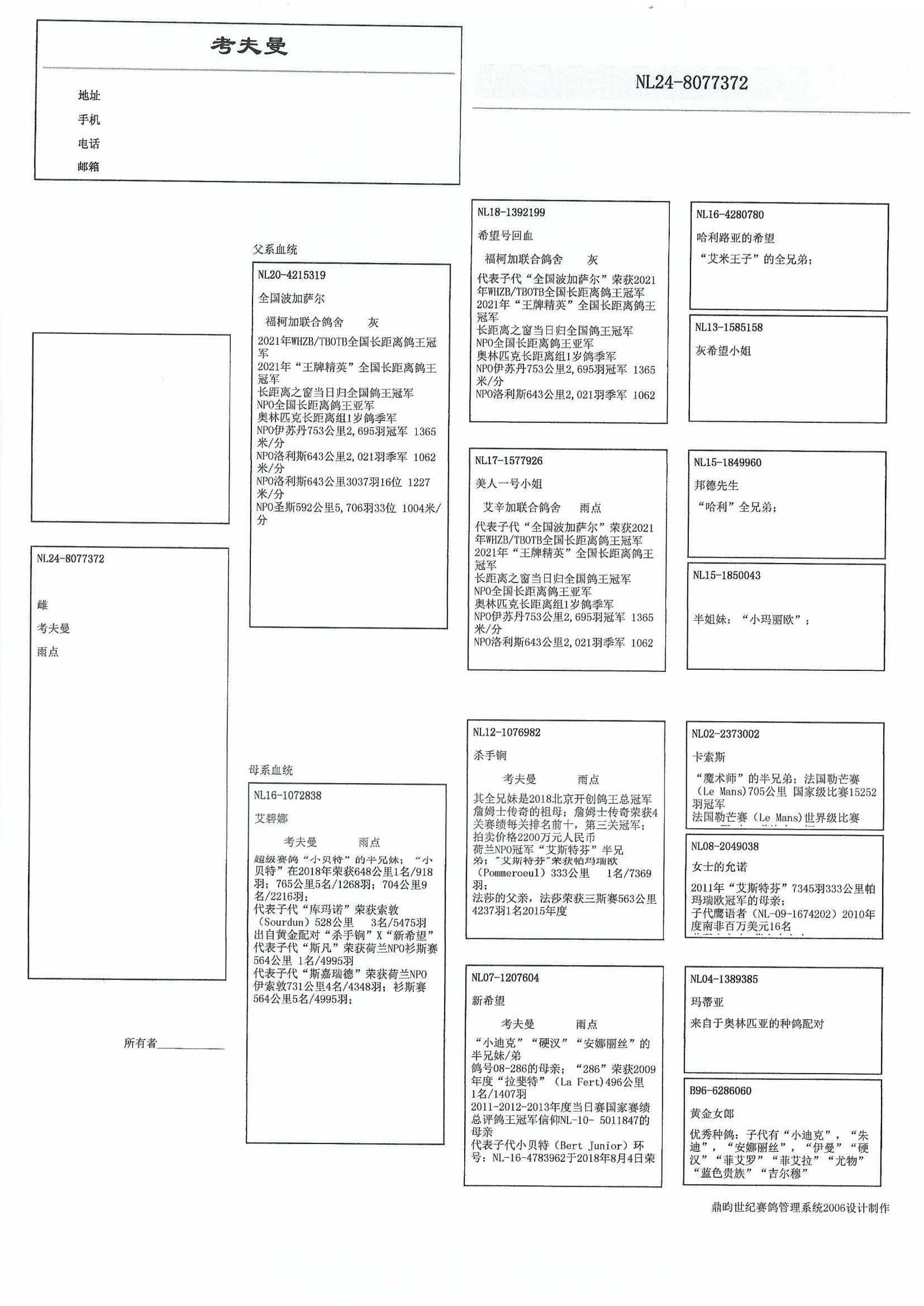 “各类赛事最佳” – 1名 全国 鸽王评选