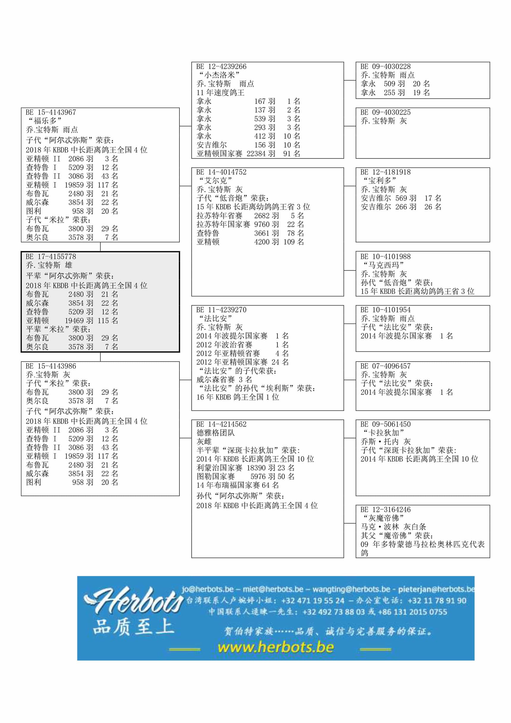 其祖辈“法比安”荣获:波提尔国家赛 12,379羽1名 – 波治省赛 2,473羽1名
