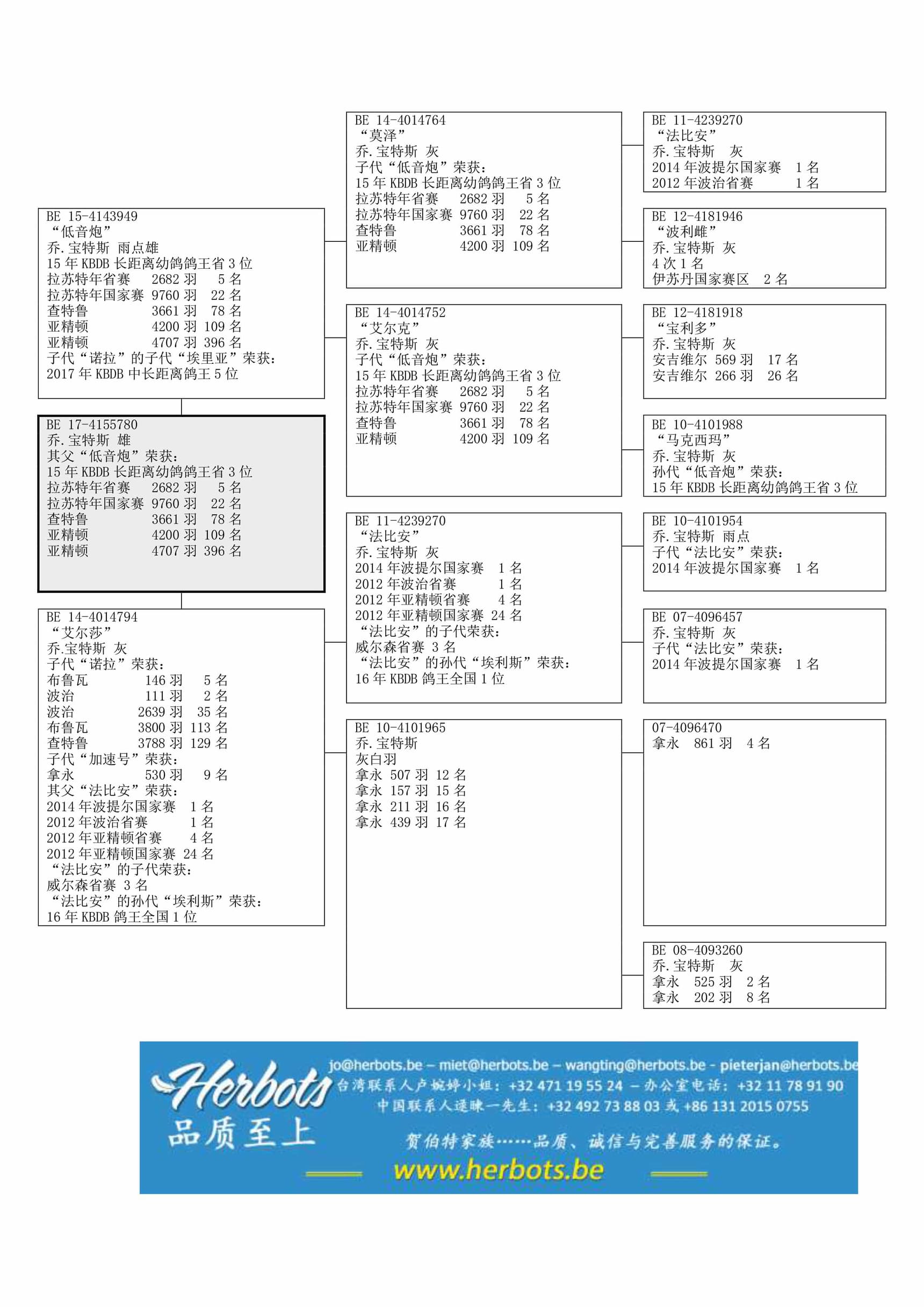 其母“火箭雌”荣获:波治国家赛区 7,821羽25名 – 全平辈“埃利斯”荣获:KBDB鸽王全国1位