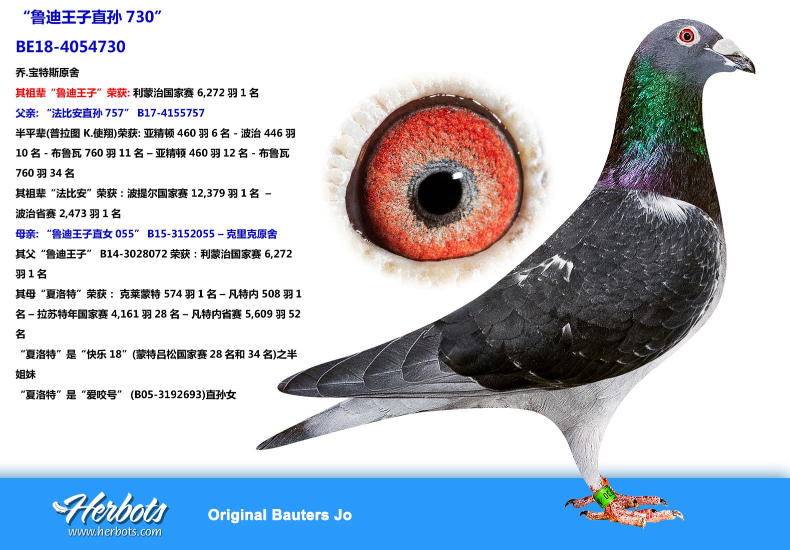 其祖辈“鲁迪王子”荣获: 利蒙治国家赛 6,272羽1名