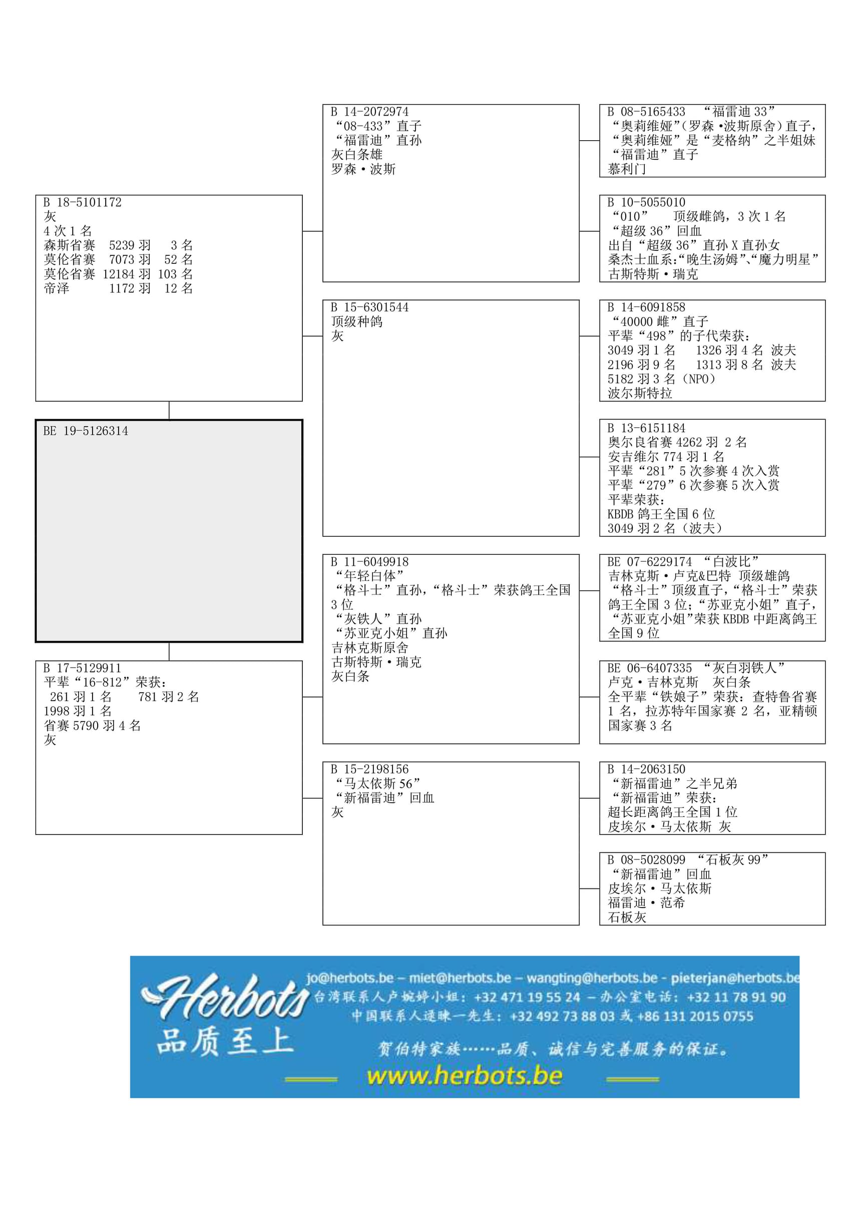 其父冠军鸽 “172-18”荣获: 4 次1名