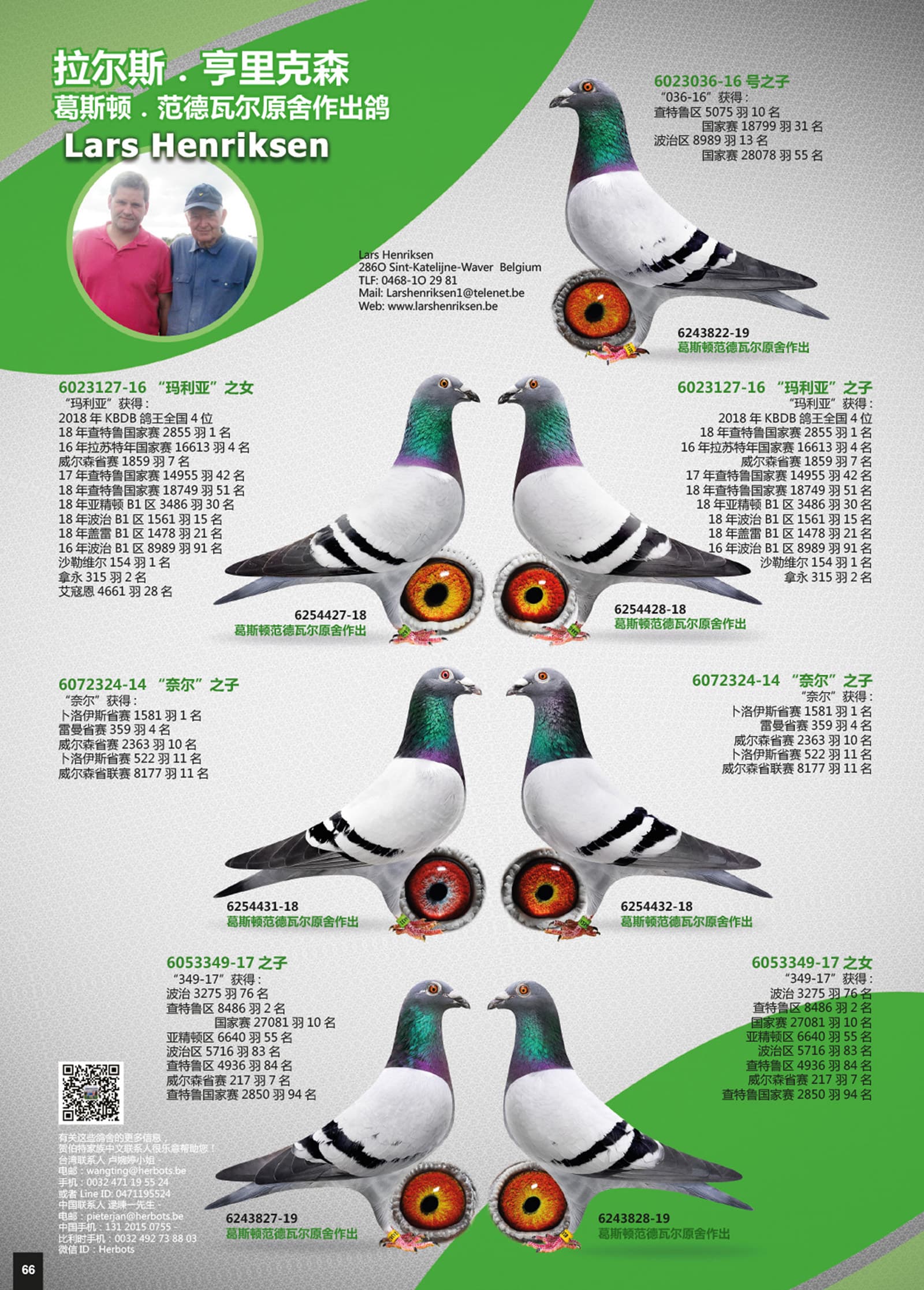 其祖辈 “玛丽亚”荣获:拉苏特年国家赛 16,613羽4名 – 查特鲁国家赛 14,955羽42名 – 查特鲁国家赛 18,749羽51名