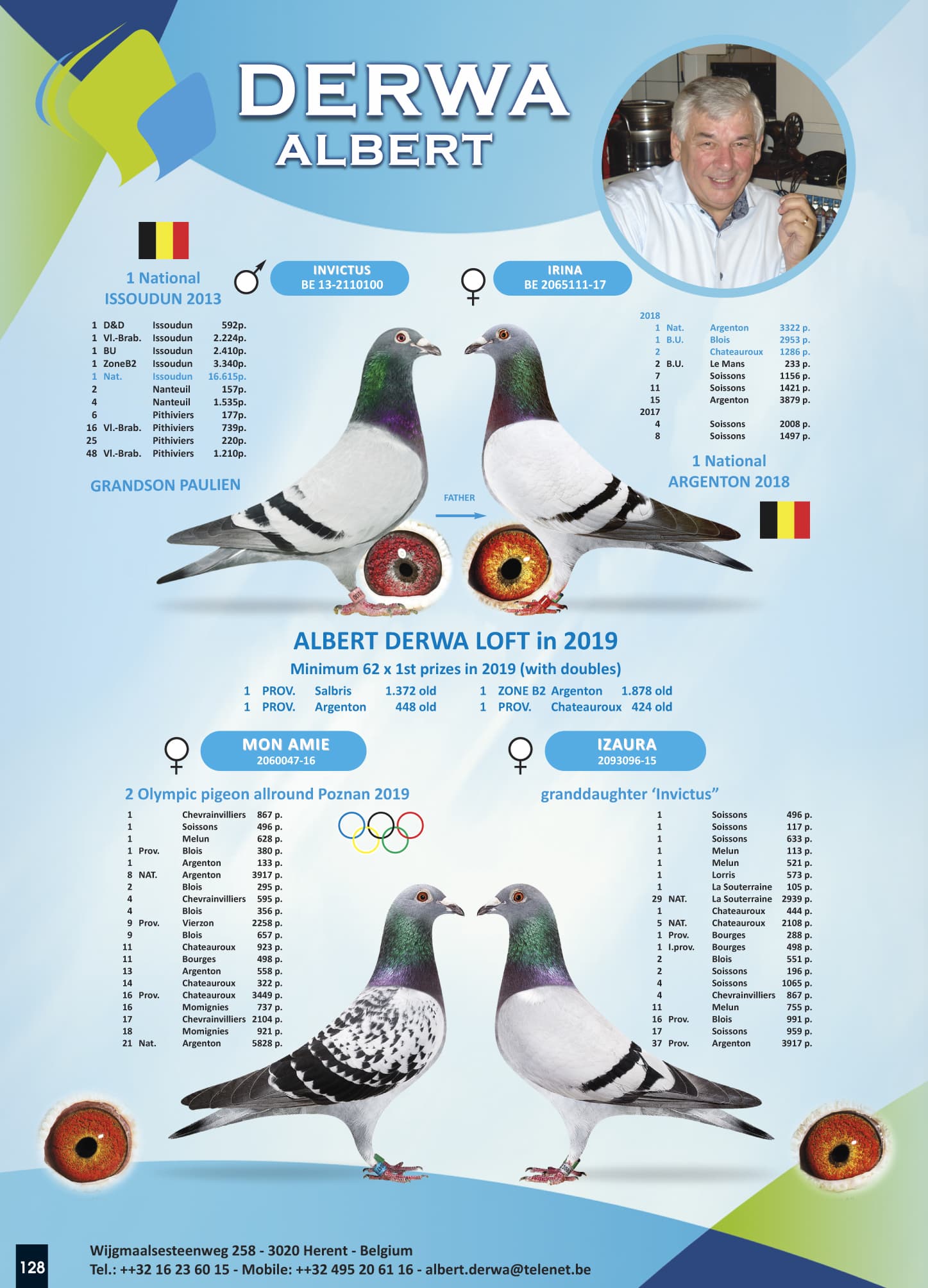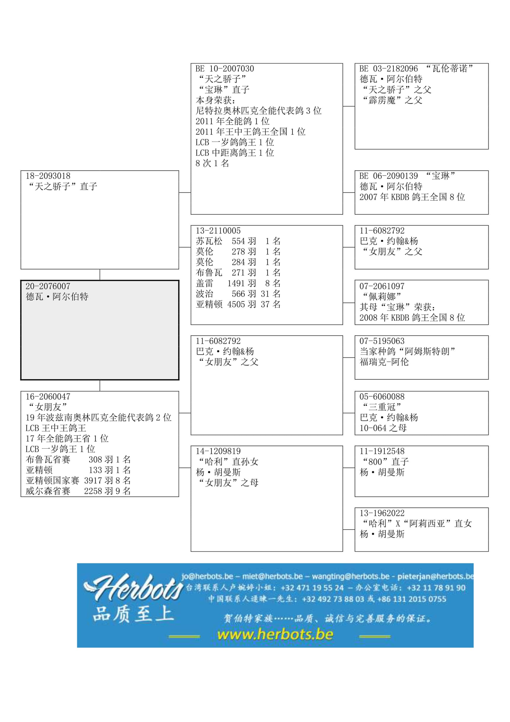 其祖辈 “天之骄子”荣获: 2011年西欧国家杯鸽王1位 – 13年尼特拉奥林匹克代表鸽3位