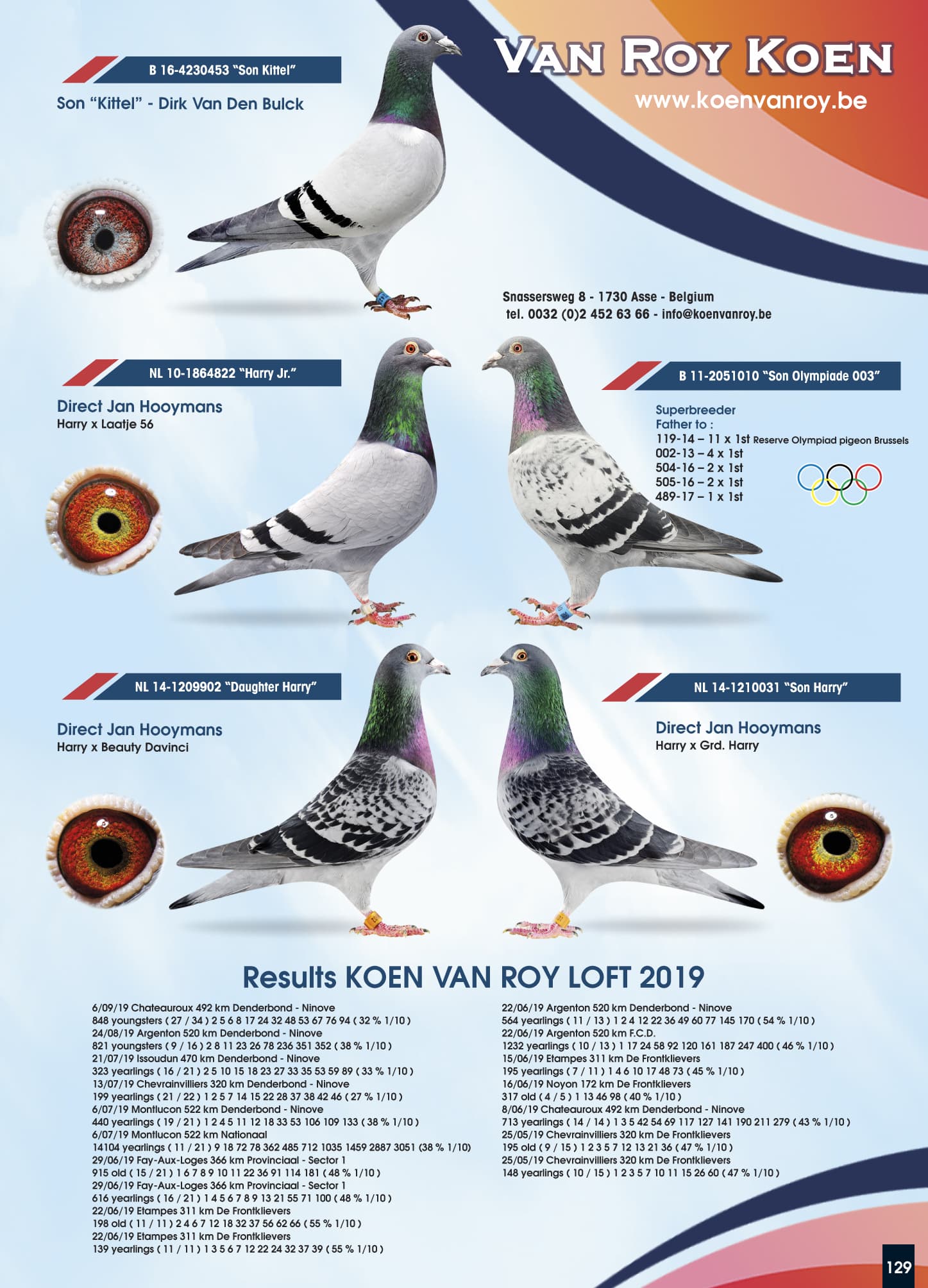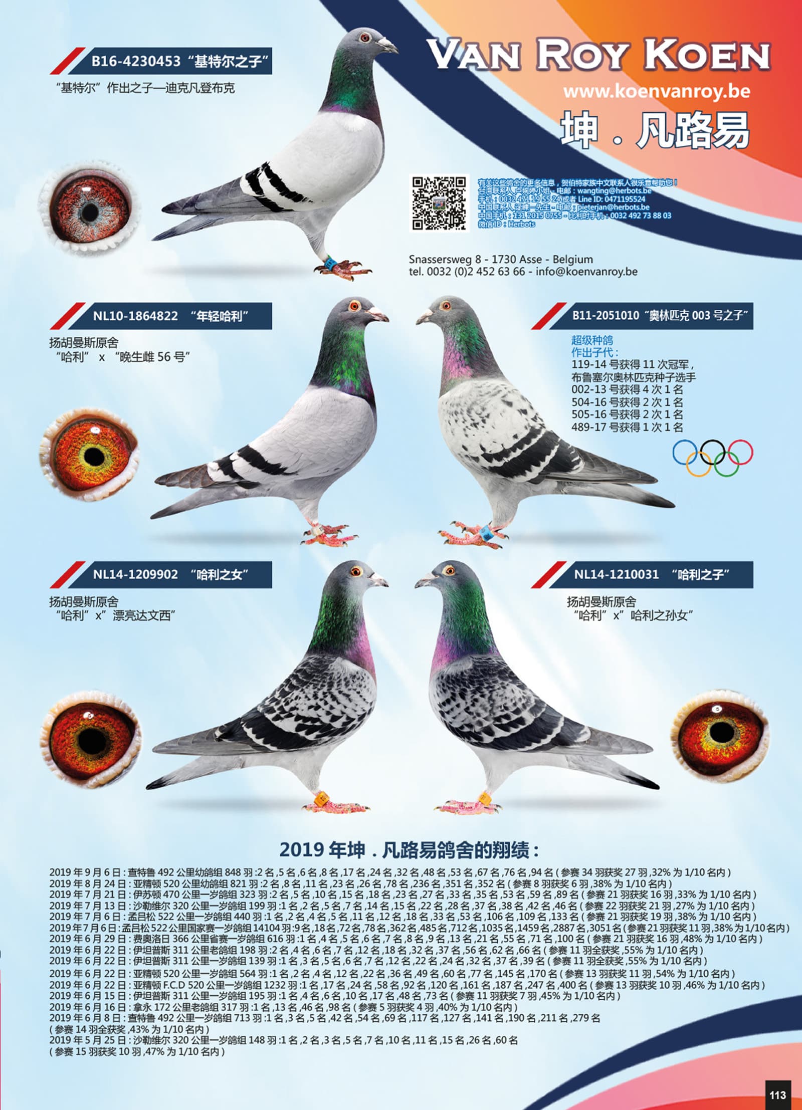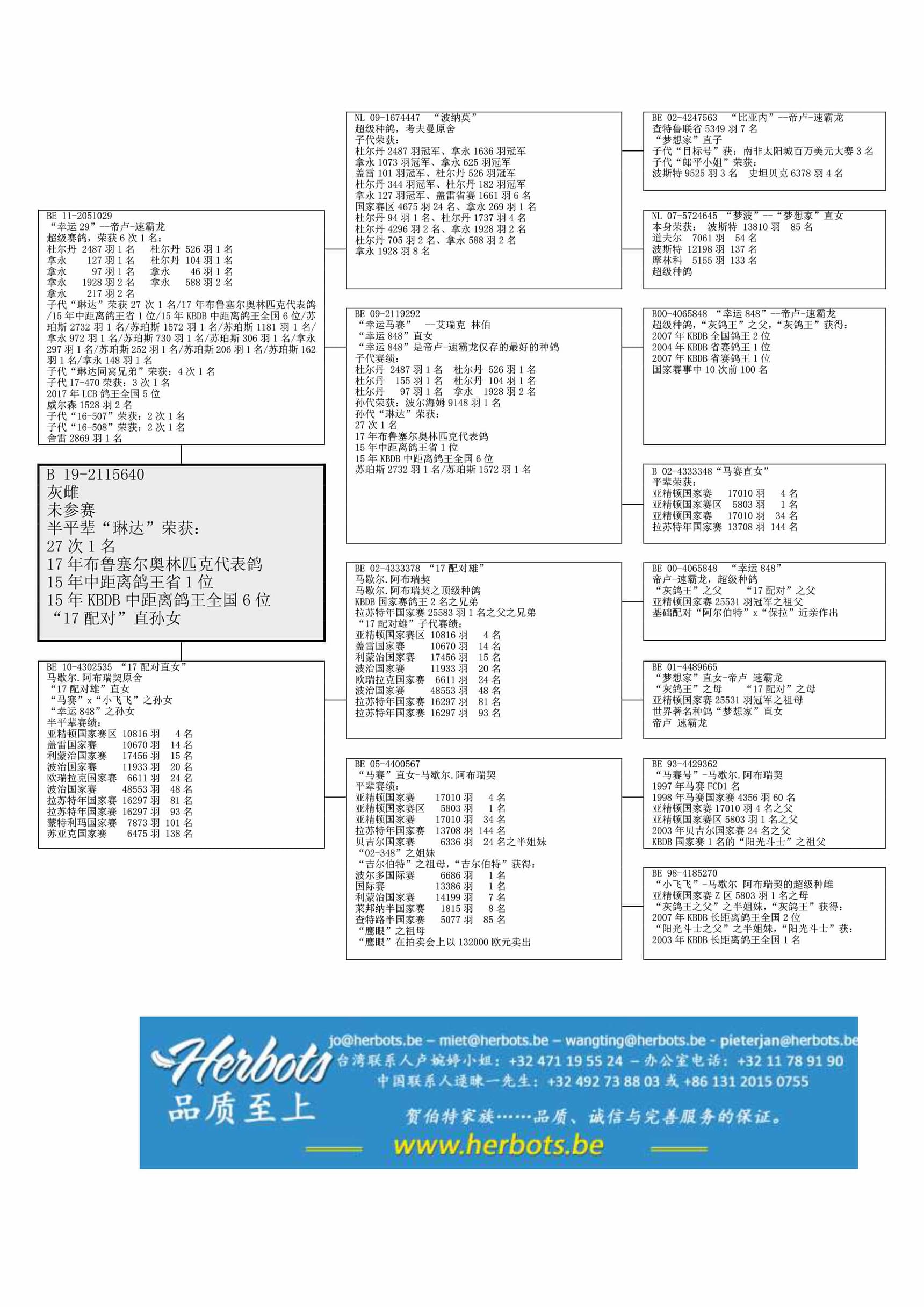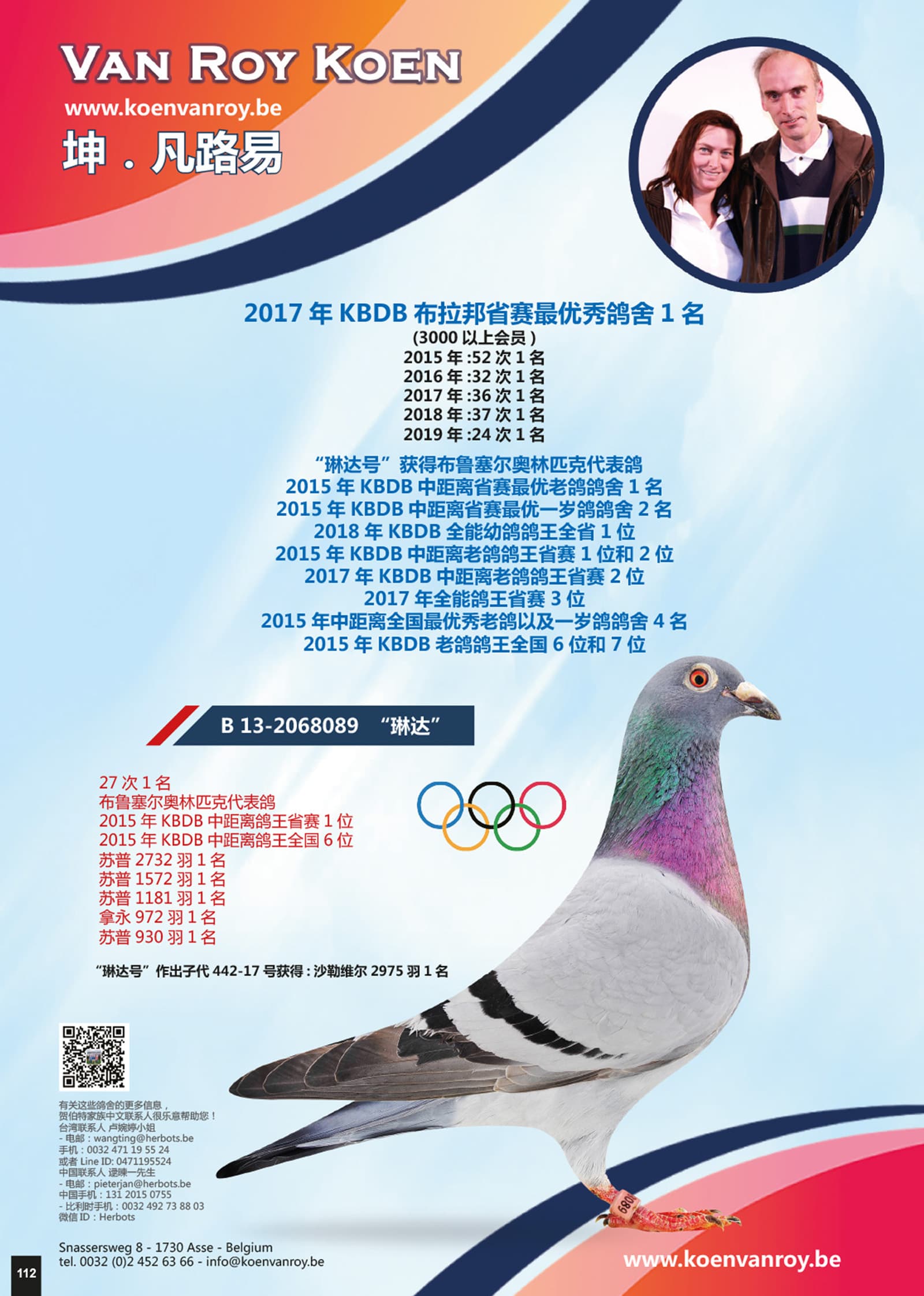 半平辈 “琳达” 荣获:2015年KBDB鸽王省1位 - 2015年KBDB中距离鸽王全国6位 - 2017年布鲁塞尔奥林匹克代表鸽