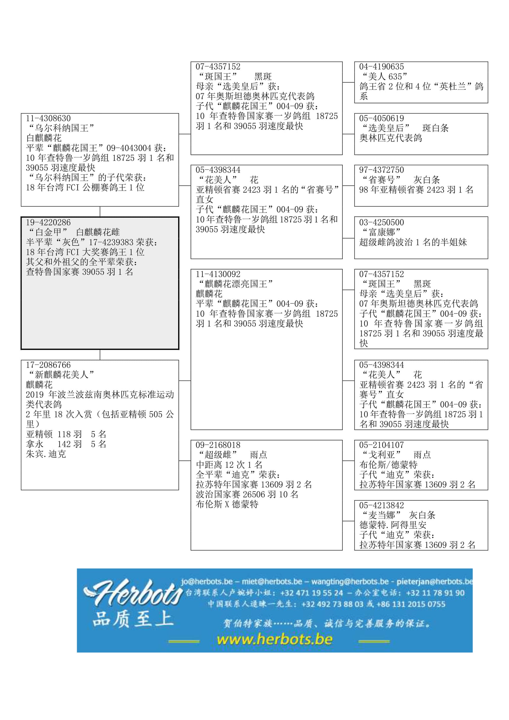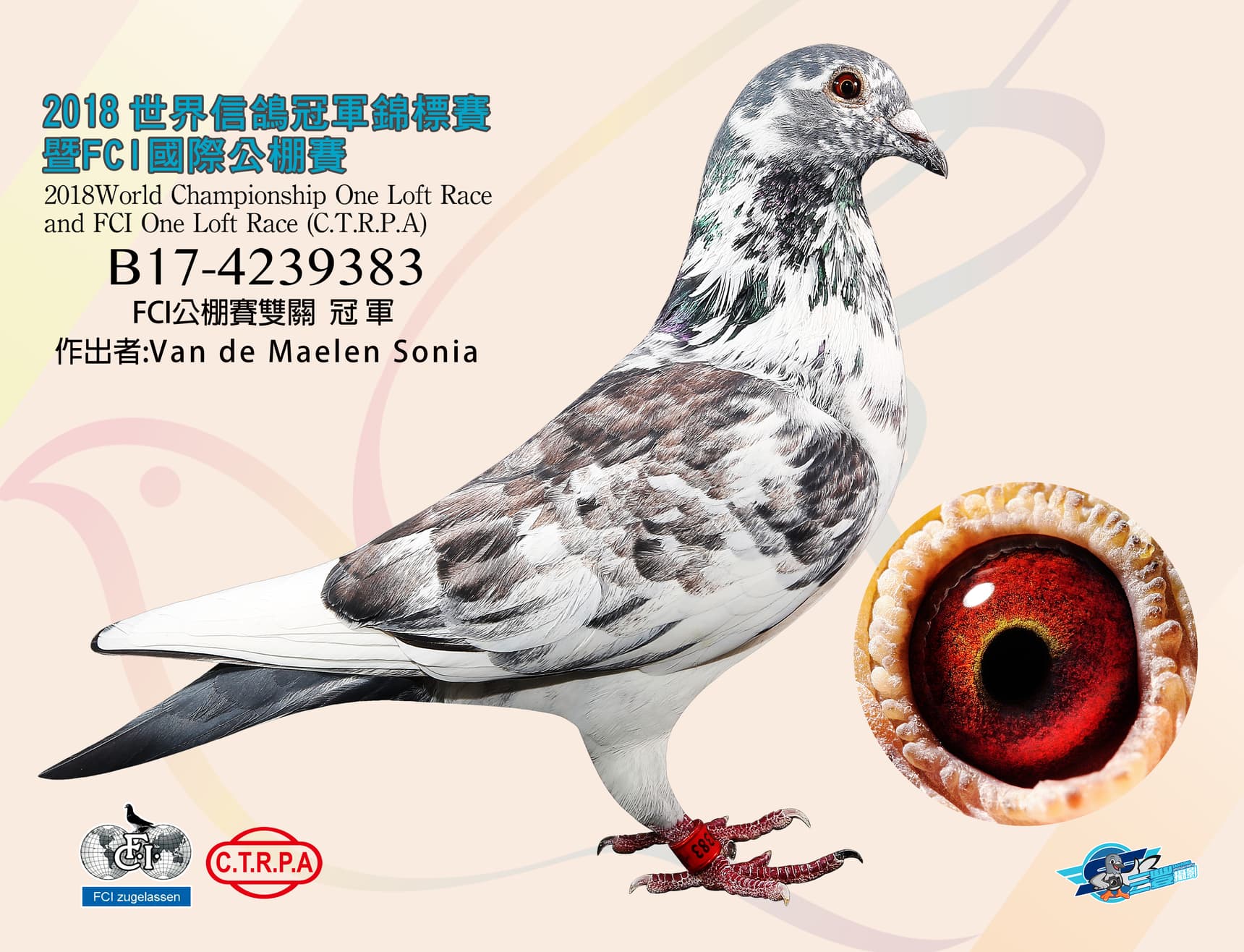 半平辈 “灰色”荣获: 2018年FCI大奖台湾鸽王1位其祖辈 “超级雌”荣获:12 次1名