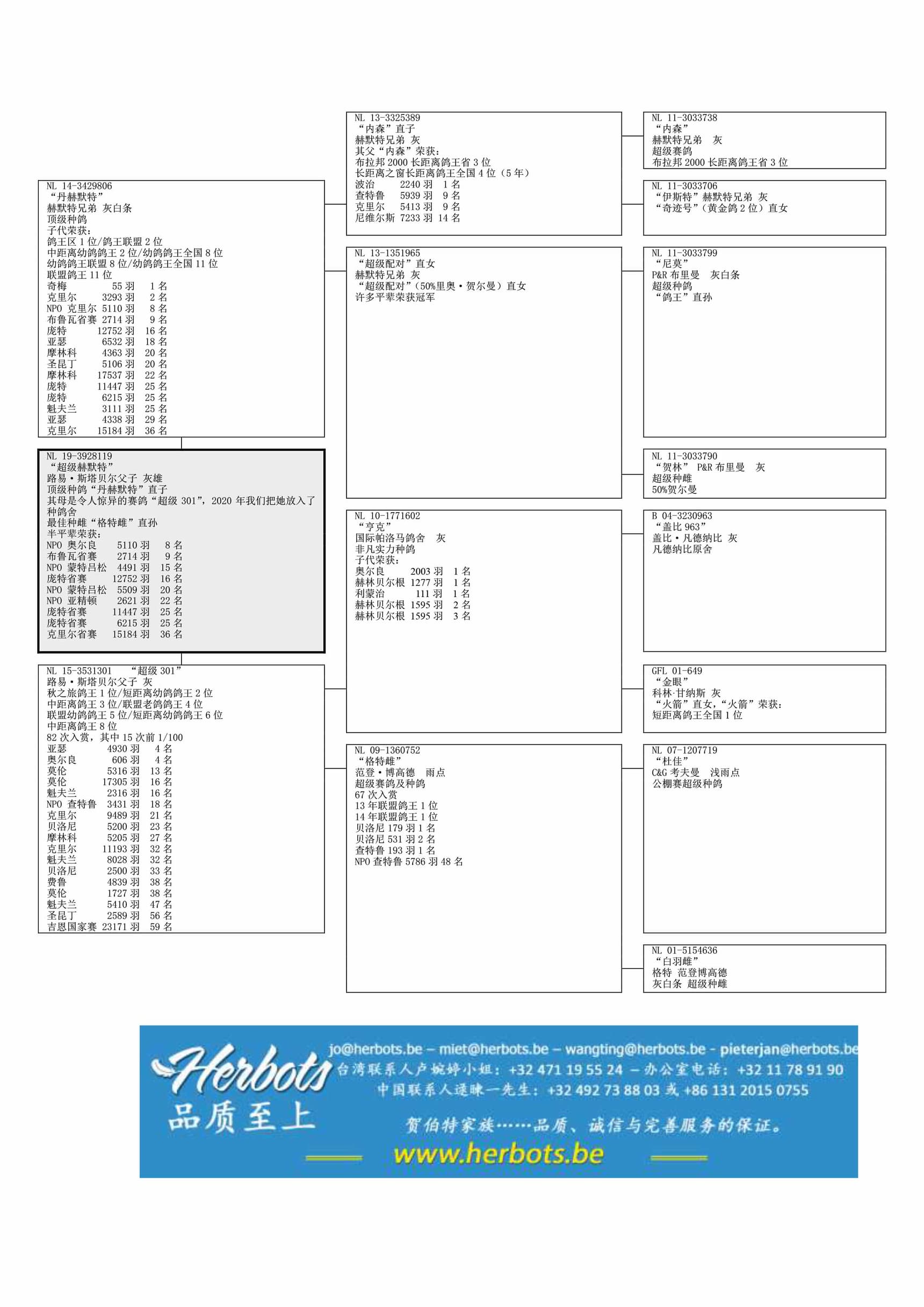 基础种鸽 “德恩·海默特” 直子冠军雌鸽 “超级 301” 直子
