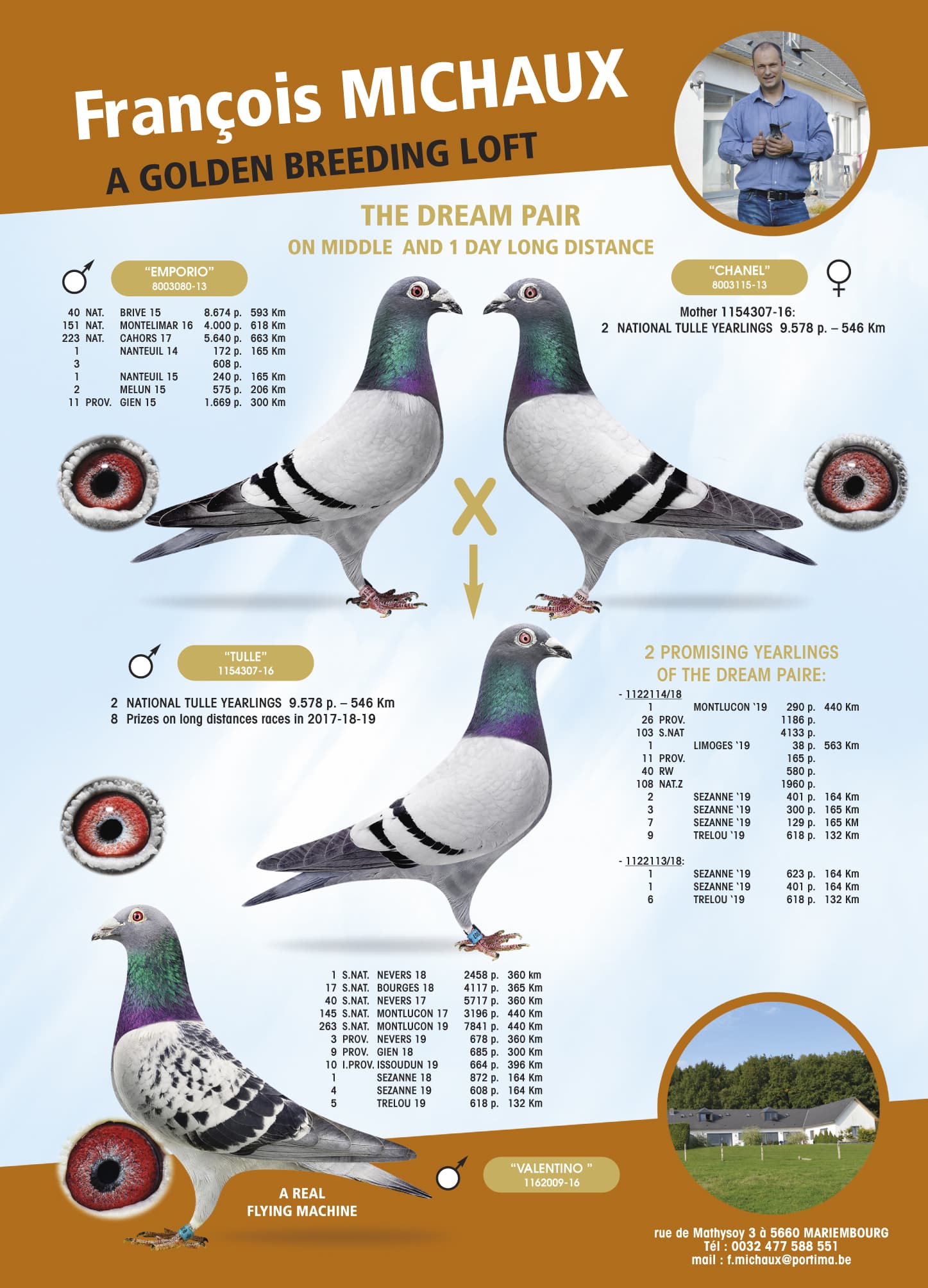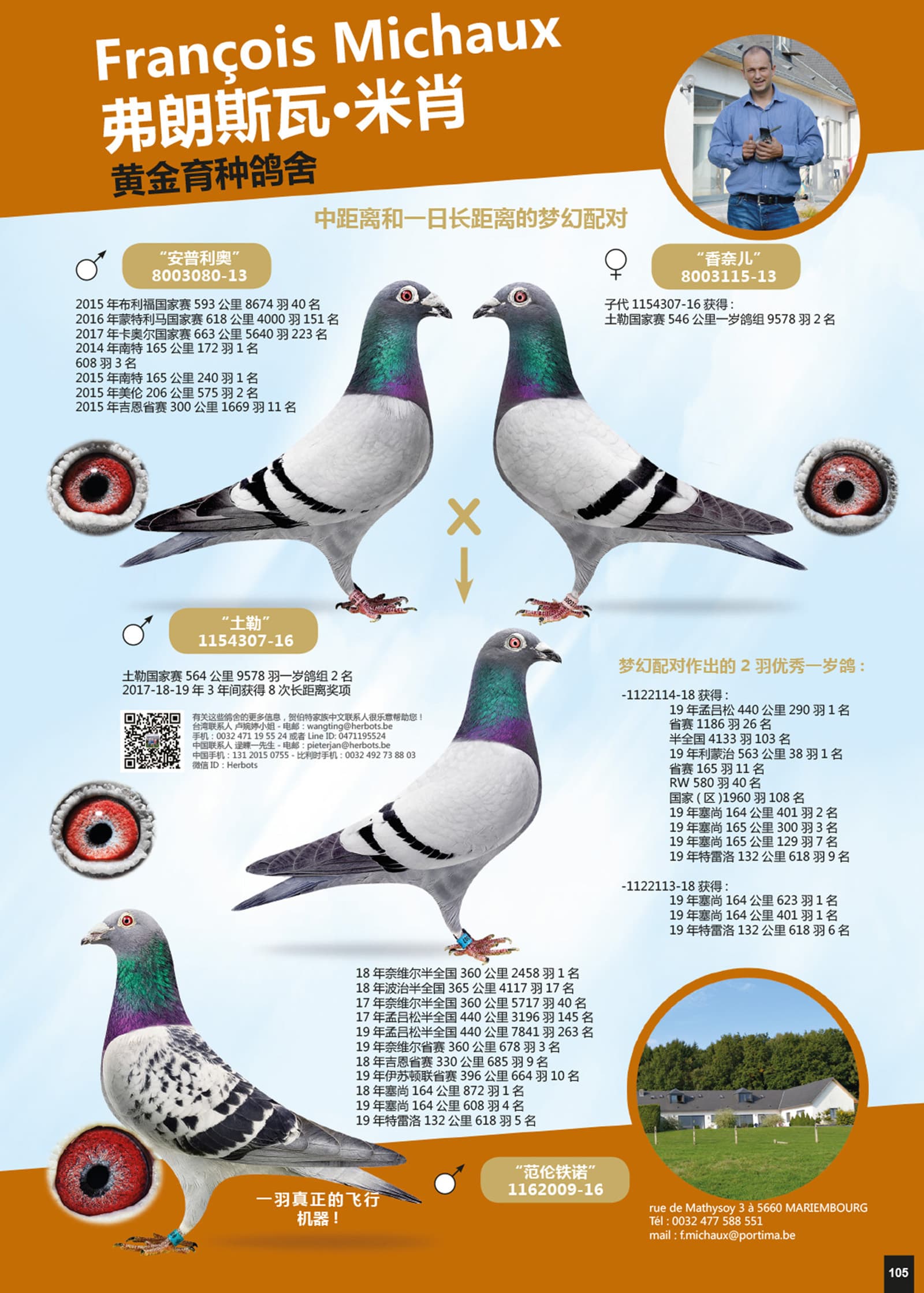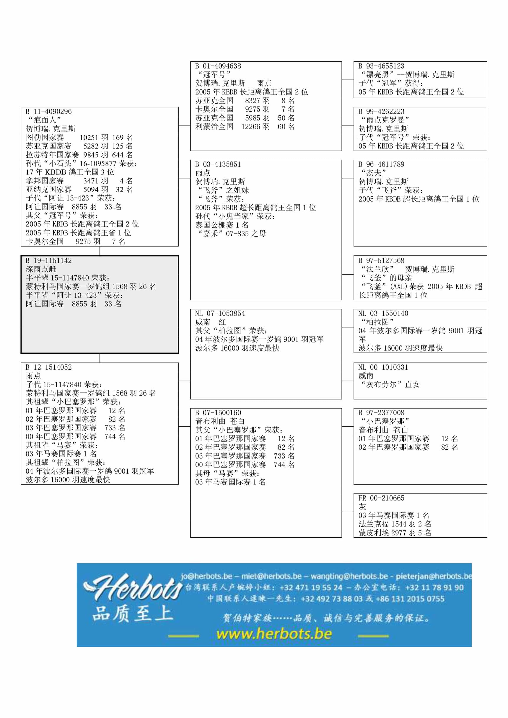 蒙特利马国家赛 1,568羽26名之半姐妹阿让国家赛 8,855羽33名之半姐妹 “冠军号” (克里斯·贺博瑞) 直孙女