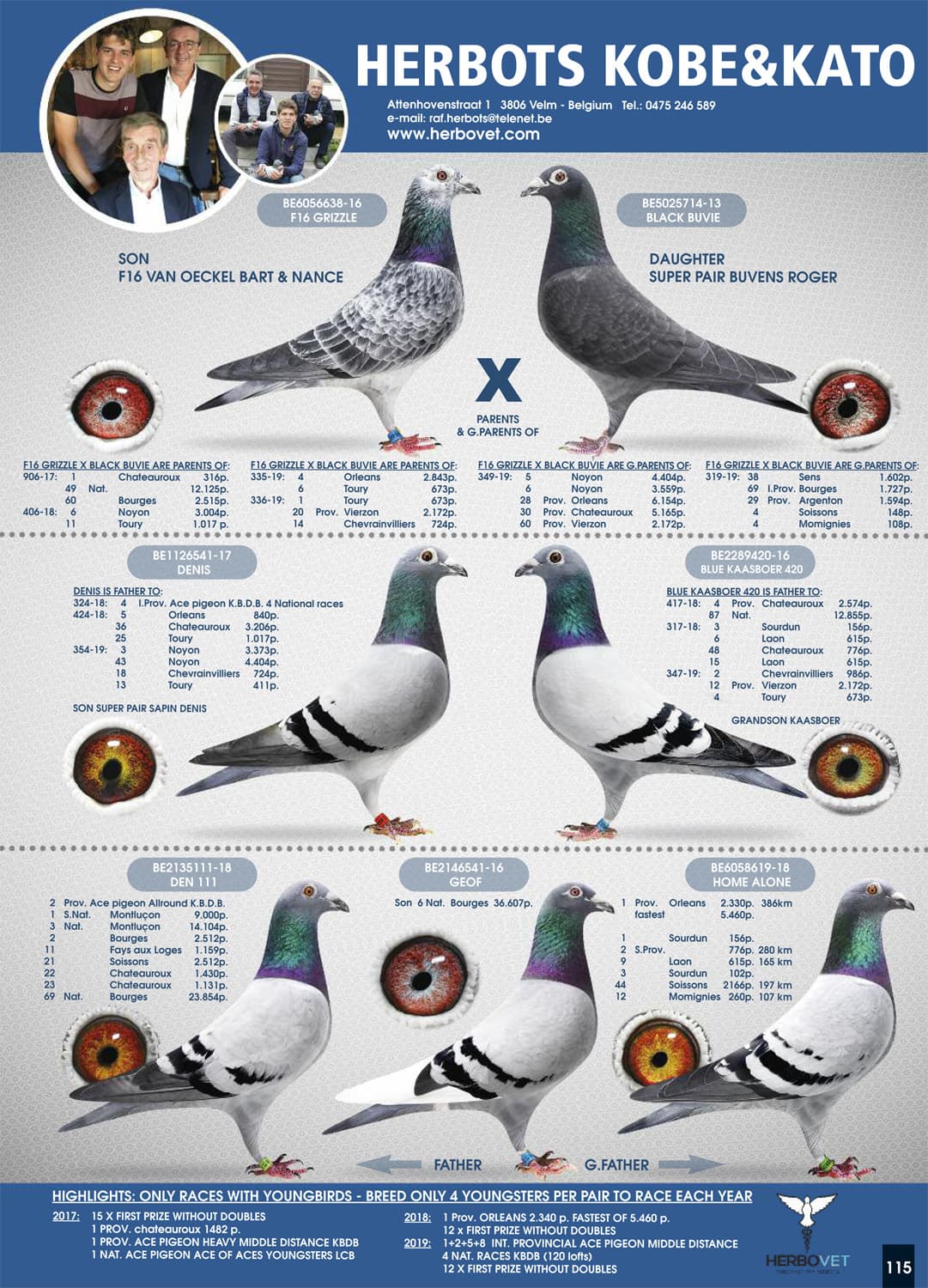 “奥林匹克鸽伊茶之兄弟” (丹尼斯·萨宾) x “温柔妈妈”(2014年国家赛比利时最佳鸽排名6位之姐妹 ) 作出