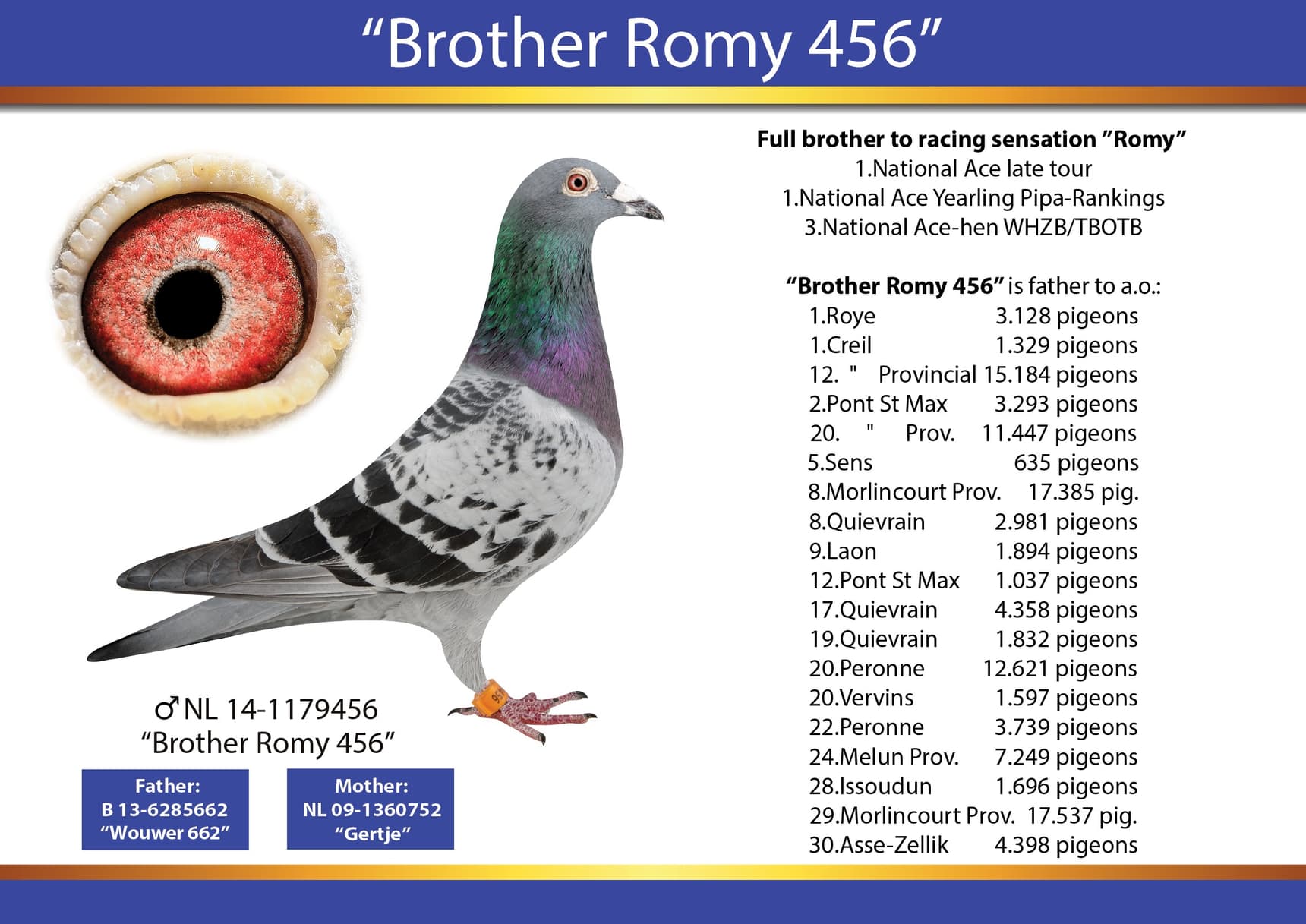2次电报奖–波提尔国家赛14,201羽4名–NPO 3,376羽8名…等.