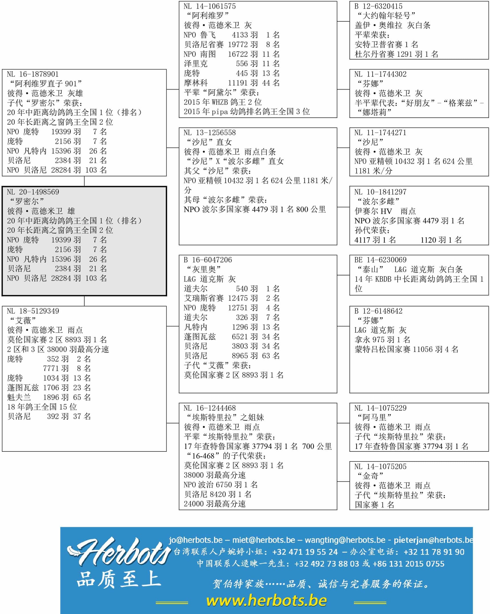荣获: 莫伦国家赛 8,893羽1名 – 38,000羽分速最高 - 庞特 7,711羽8名 – 18年鸽王全国15位