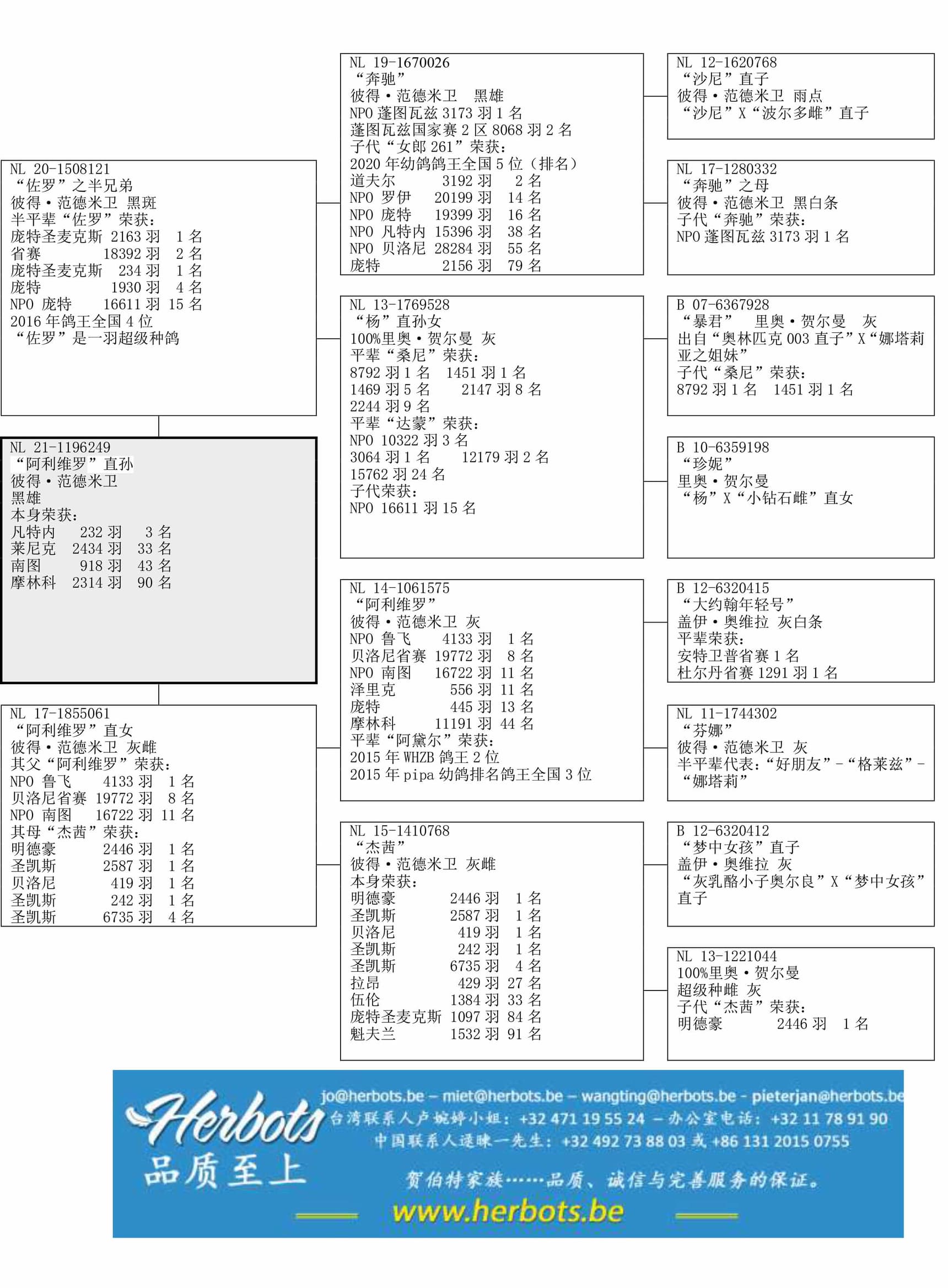 “佐罗”: 2016年鸽王全国4位 – 道夫尔 3,789羽1名 - 庞特 2,163羽1名 (省赛 18,392羽2名) - 庞特 234羽1名 (NPO 16,611羽15名)