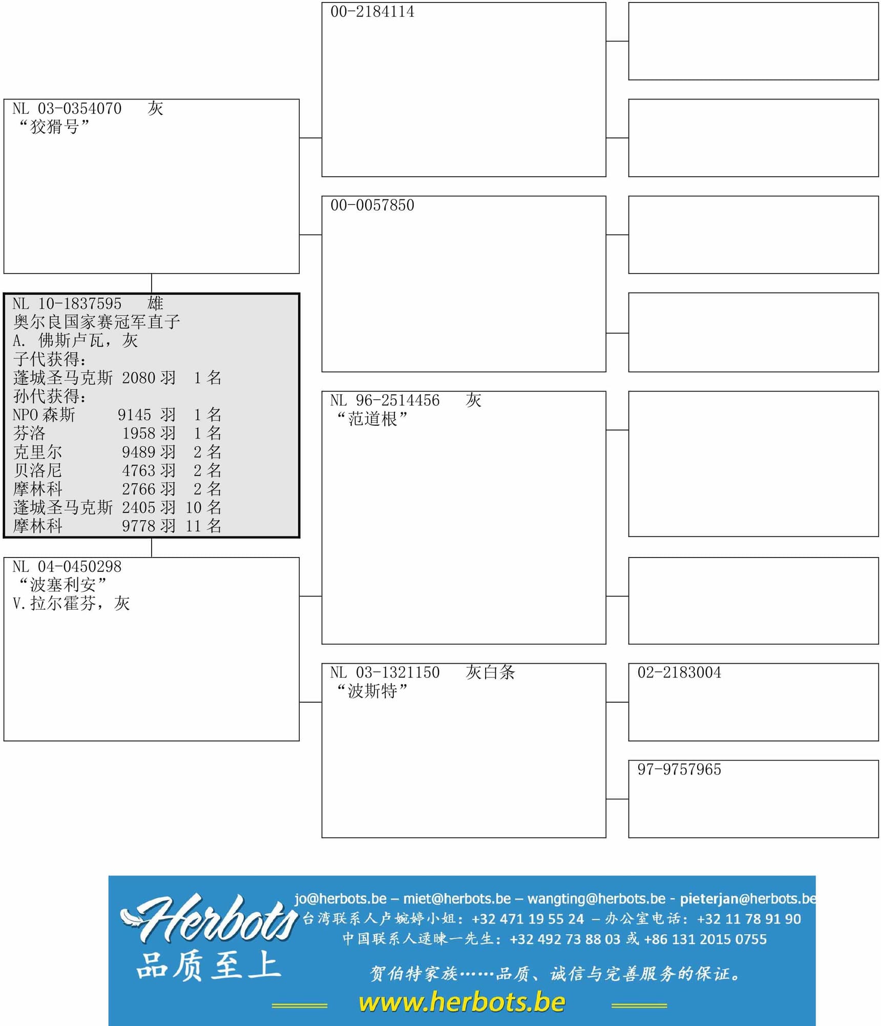 孙代获得:NPO森斯 9145 羽 1名芬洛 1958羽 1名克里尔 9489羽 2名贝洛尼 4763羽 2名摩林科 2766羽 2名蓬城圣马克斯 2405羽 10名