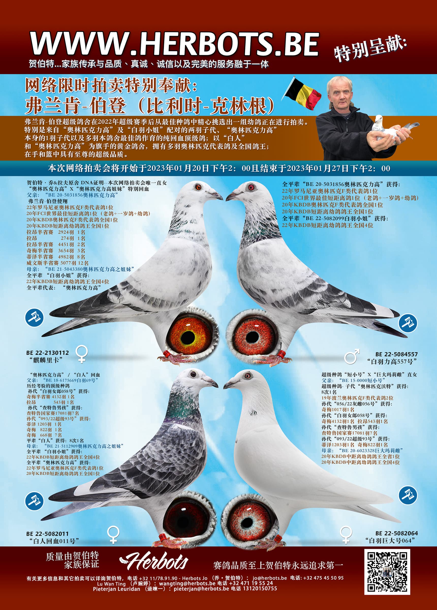 弗兰肯-伯登超级鸽舍在2022年超级赛季后从最佳种鸽中精心挑选出一组幼鸽正在进行拍卖。