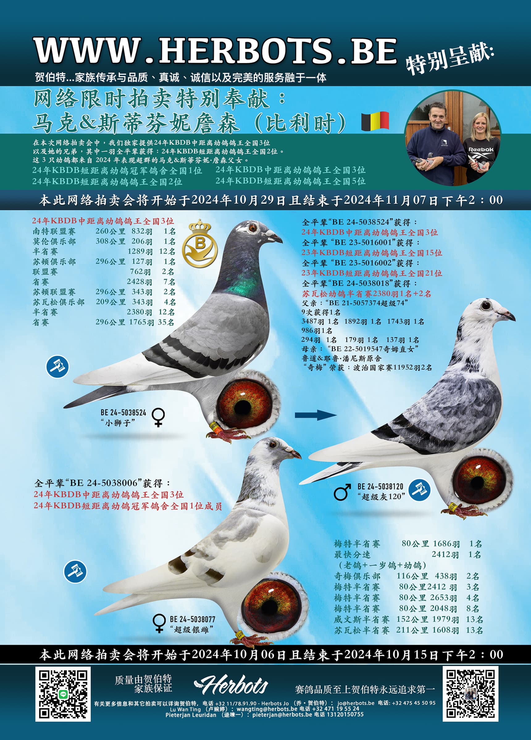 在本次网络拍卖会中,我们独家提供24年KBDB中距离幼鸽鸽王全国2位